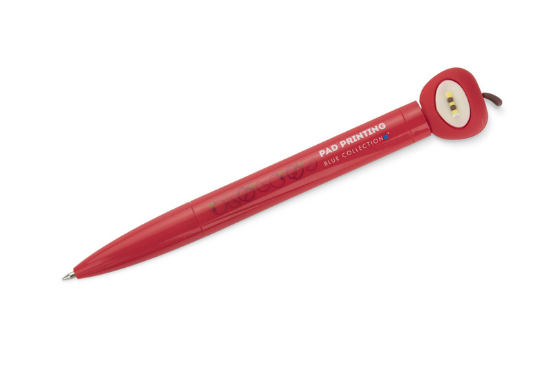 Der Kugelschreiber SKIPPI mit Apfelmotiv zeichnet sich durch sein außergewöhnliches Design und die Spinnerfunktion an der Spitze aus. Die Drehmechanik ermöglicht eine komfortable Handhabung und die lackierte Oberfläche unterstreicht seine lebendigen Farben. Die Mine mit Tinte auf Ölbasis mit einer Schreibstärke von 0,7 mm garantiert ein flüssiges und komfortables Schreiben. Der SKIPPI-Stift ist ein praktisches Gadget, das die Blicke auf sich zieht und die täglichen Notizen belebt.