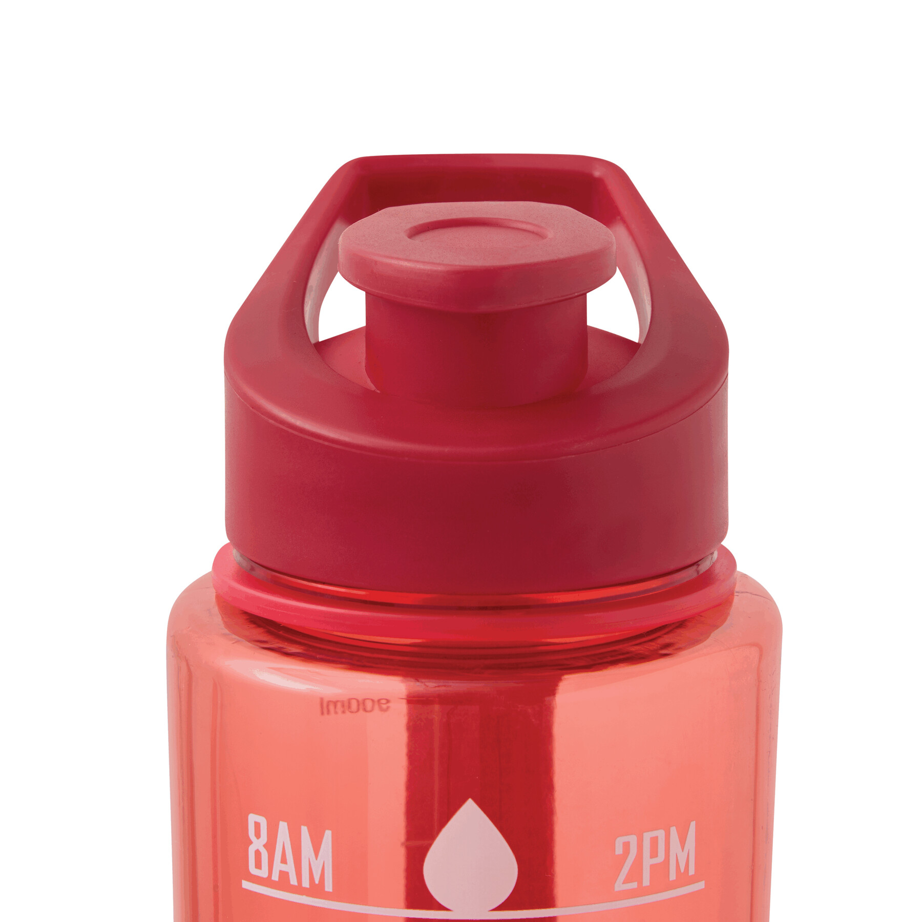 Sport-Trinkflasche AQUA LEVEL: transparente farbige Trinkflasche aus langlebigem PETG, farbig abgestimmter Kunststoff-Deckel mit sicherem Schraubverschluss, Silikon-Dichtring, Trinköffnung zum Aufklappen und Tragegriff, motivierende Zeit- und Wassermengenskala (Uhrzeiten / ml), mit Trageschlaufe, Füllmenge ca. 1.000 ml