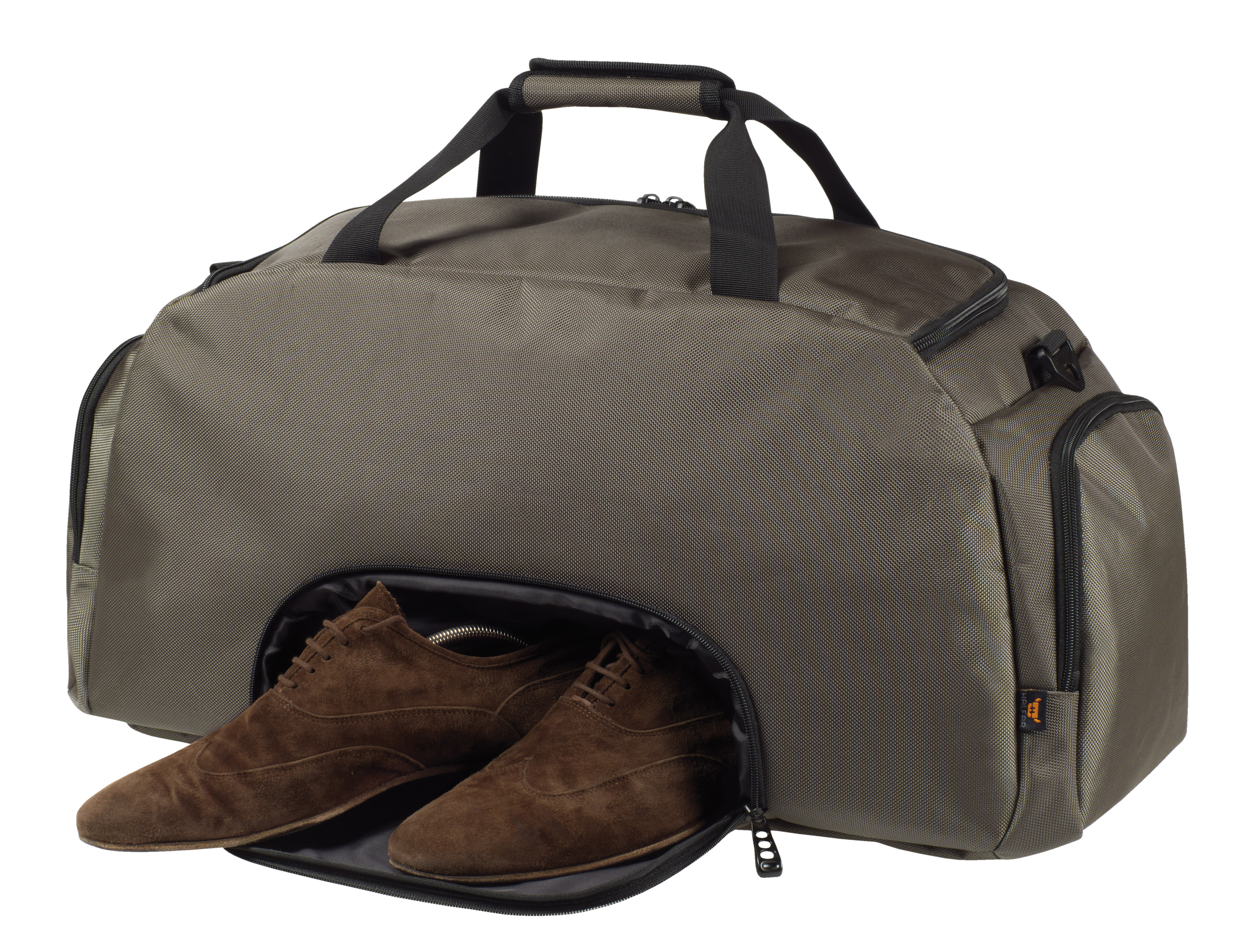 Geräumiges Hauptfach mit 2-Wege-Reißverschluss; 2 Vortaschen mit Reißverschluss; 2 Seitentaschen mit Reißverschluss; Schuhfach; abnehmbarer, längenverstellbarer Tragegurt mit bequemem Schulterpolster; Handgriffe mit Griffmanschetten; Bodenfüße