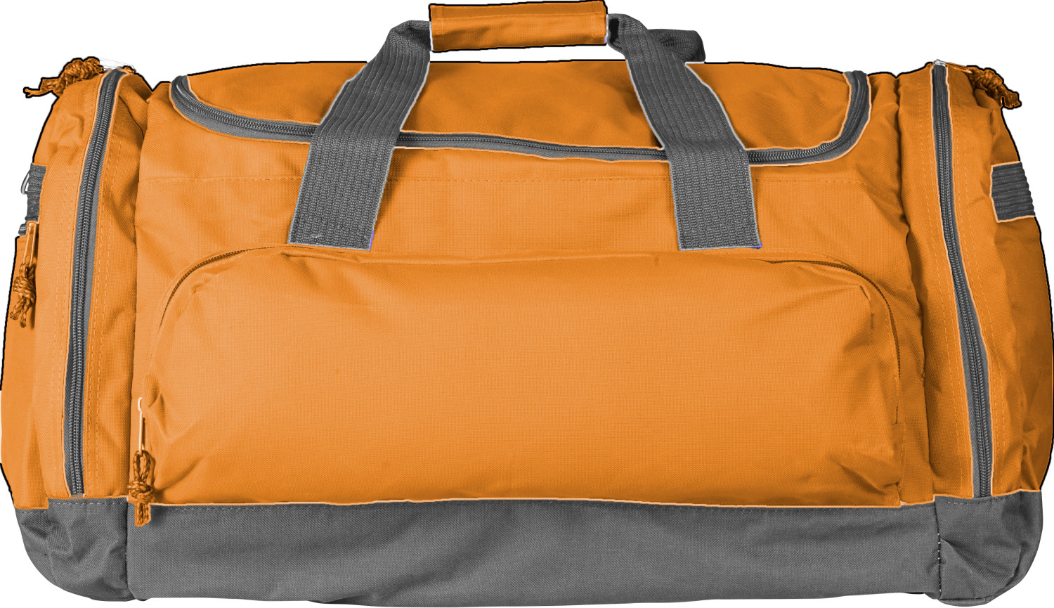 Sport- / Reisetasche aus Polyester (600D), mit RV-Fronttasche und 2 RV-Seitenfächern, Tragegriffen mit Klettverschluss, gepolstertem, verstellbarem Schultergurt und Zipper mit Zugband.