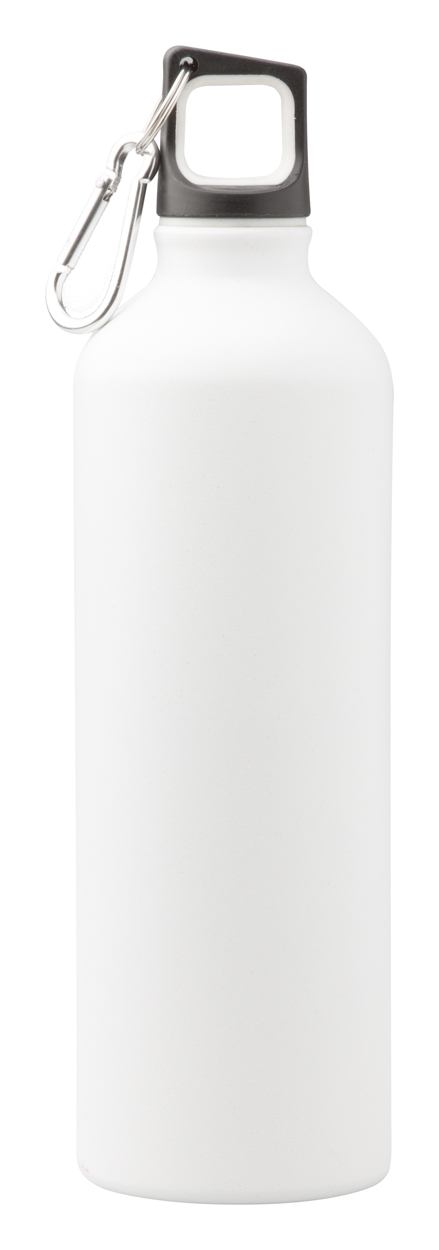 Trinkflasche aus Aluminium mit matter Oberfläche und Karabinerhaken. Füllmenge: 750 ml.