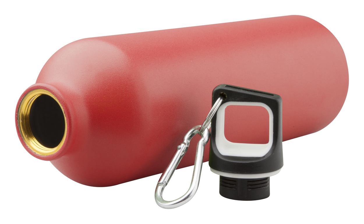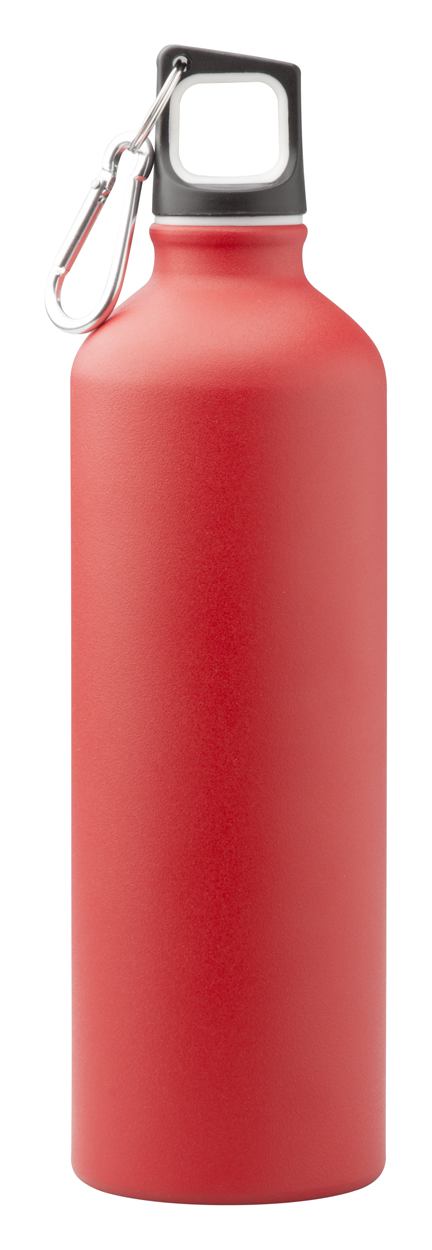 Trinkflasche aus Aluminium mit matter Oberfläche und Karabinerhaken. Füllmenge: 750 ml.