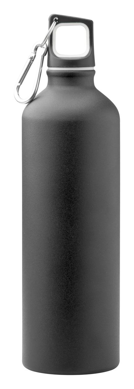 Trinkflasche aus Aluminium mit matter Oberfläche und Karabinerhaken. Füllmenge: 750 ml.