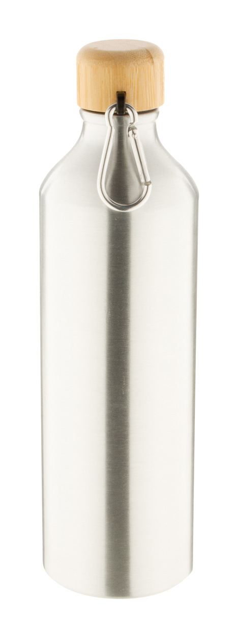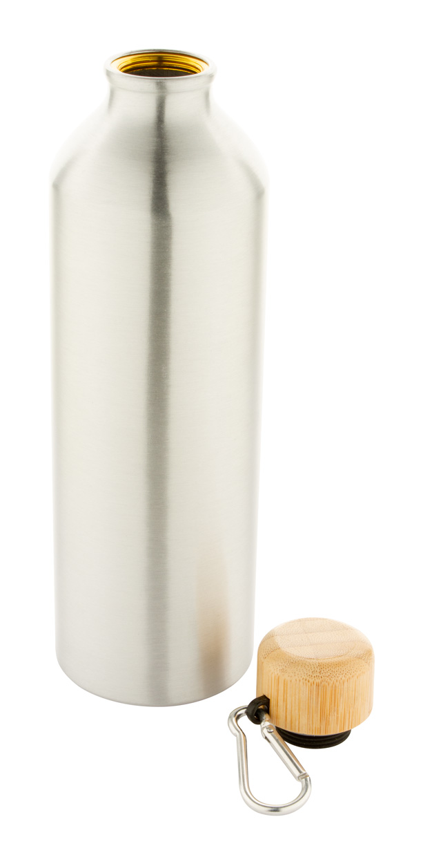 Sportflasche aus Aluminium mit Bambusdeckel und Karabiner. Füllmenge: 800 ml.
