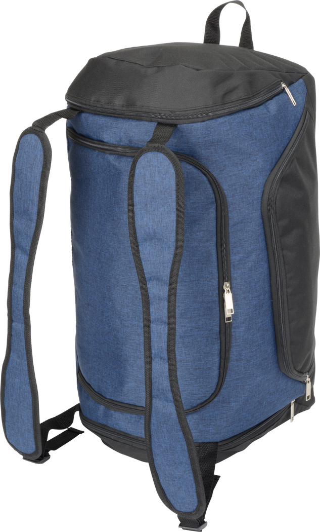 Sporttasche 2 IN 1: geräumiges Reißverschluss-Hauptfach, Reißverschluss-Vortasche, 1 zusätzliche Trageschlaufe, 2 seitliche Reißverschluss-Taschen, verstärkte Tragegriffe, auch als Rucksack einsetzbar