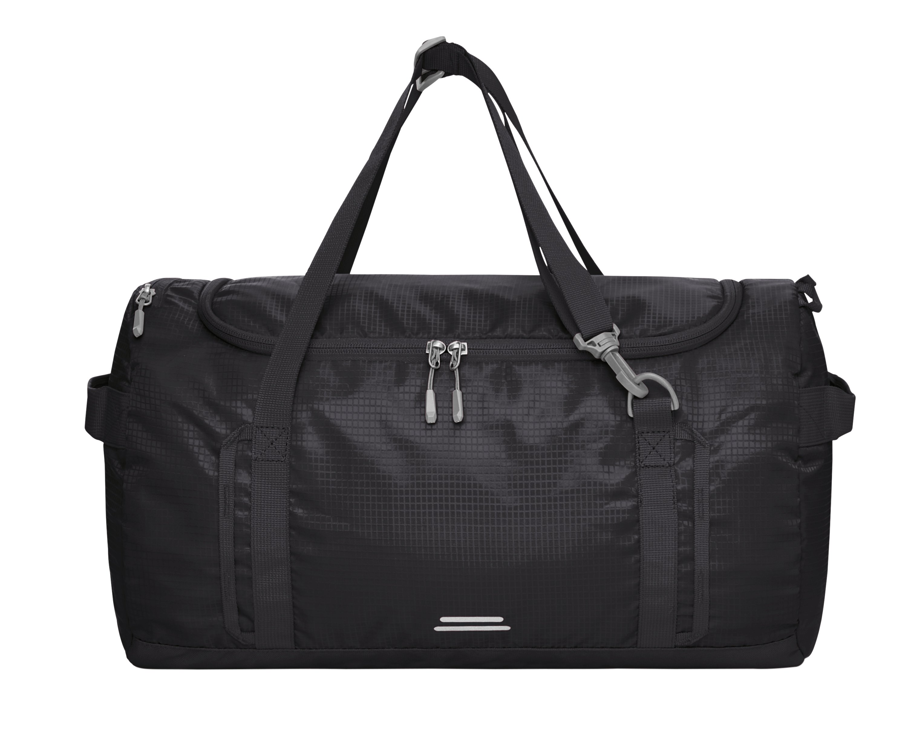 Leichte, funktionelle Sporttasche mit Rucksackfunktion; geräumiges Hauptfach; große Öffnung mit 2-Wege-Reißverschluss; Reißverschlussfach im Deckel; hängendes sowie flaches Reißverschlussfach innen; seitliches Reißverschlussfach; funktionelles Schlaufen-Gurtband; Handgriffe beidseitig; längenverstellbare Tragegriffe auch als Rucksackträger nutzbar; dekorativer Reflexdruck