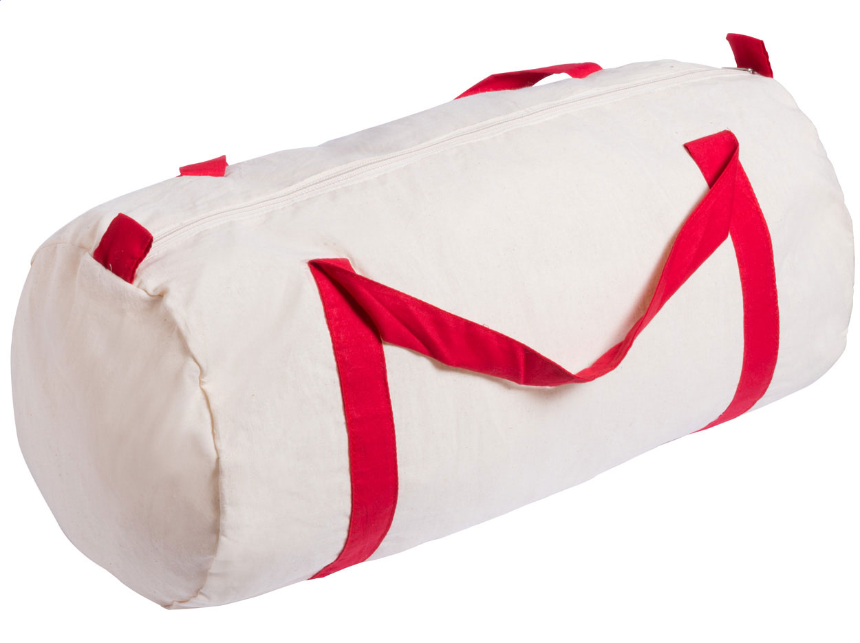 Baumwoll-Sporttasche mit farbigen Tragegriffen und Reißverschluss (100g / m²).