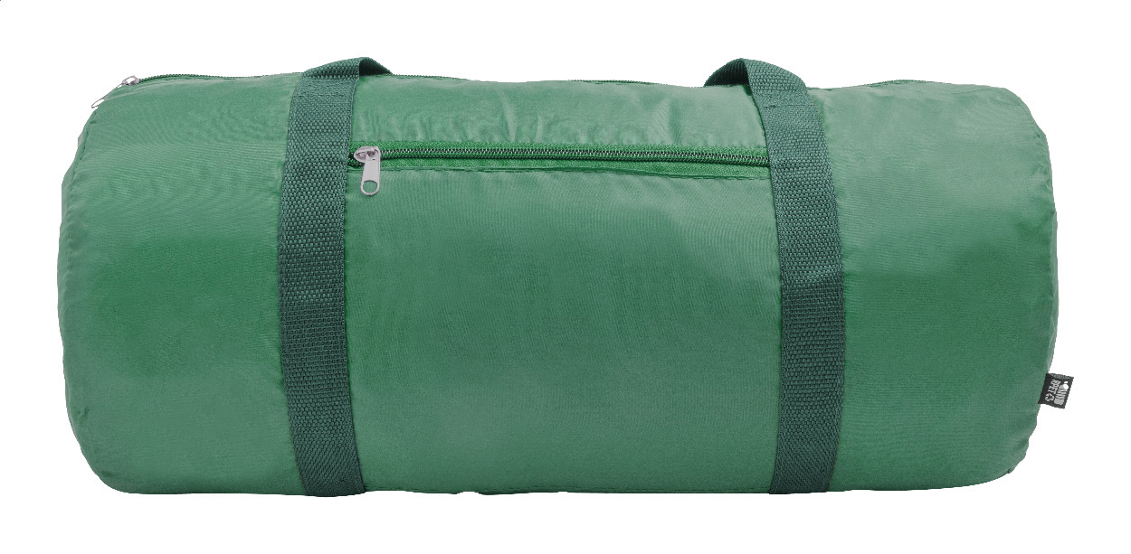 RPET-Sporttasche mit Reißverschluss-Hauptfach, vorderer Reißverschlusstasche und langen Henkeln. Material: 190T RPET-Polyester. Mit RPET-Label.