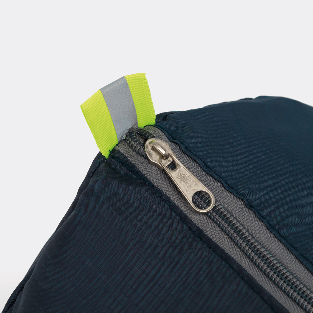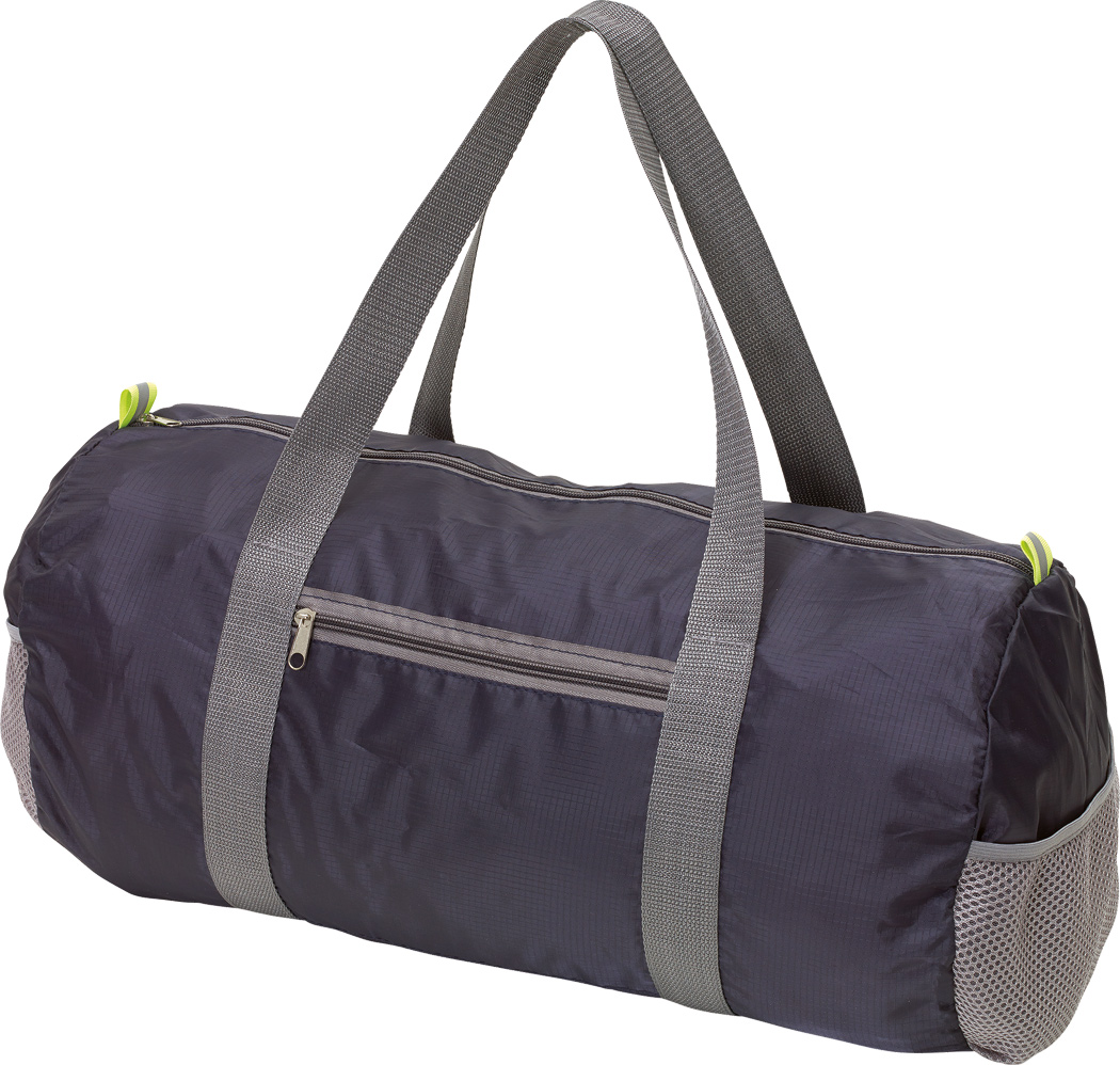 Sporttasche VOLUNTEER GYM, faltbar: Reißverschluss-Vorfach, Reißverschluss-Hauptfach mit 2 Reflektor-Etiketten, 2 seitliche Netzfächer, 2 lange Tragegriffe – lässt sich platzsparend zu einer Mini-Tasche zusammenfalten und passt perfekt in die Handtasche