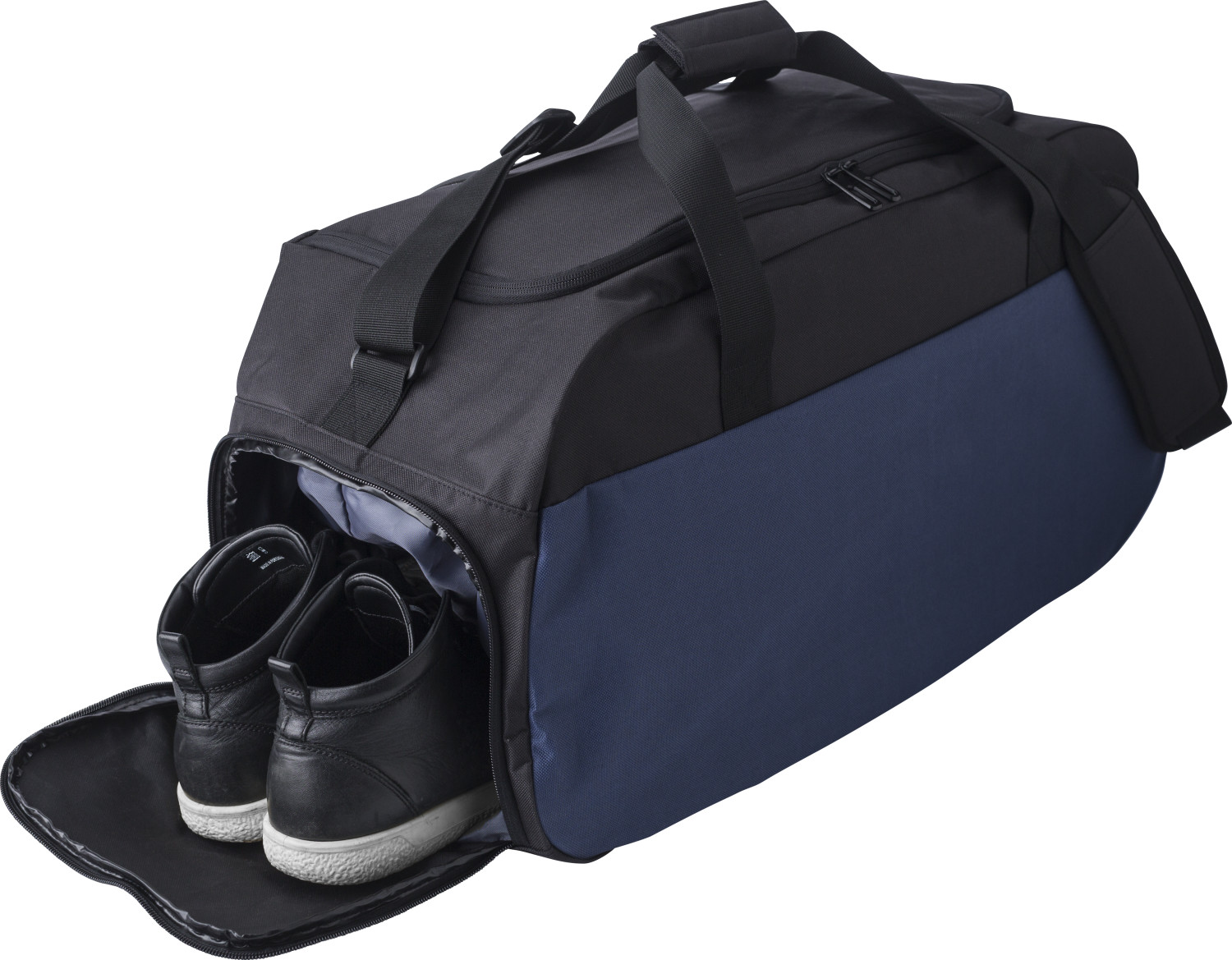 Sporttasche aus Polyester (600D) mit Hauptfach und Seitentasche mit Reißverschluss. Mit Tragegriffen und verstellbarem Schultergurt.