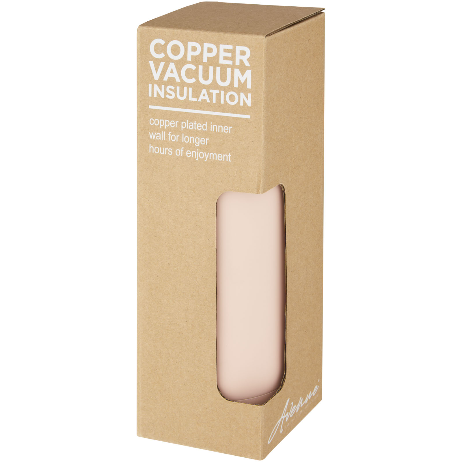 Kupfer-vakuumisolierte Edelstahlflasche mit klarem Design. Die isolierte Konstruktion aus 18/8-Edelstahl verhindert die Bildung von Kondenswasser an der Innenseite der Flasche, und die trendige Pulverbeschichtung macht sie besonders haltbar. BPA-frei, geprüft und zugelassen nach dem deutschen Lebensmittelrecht (LFGB). Auf Phthalate geprüft und zugelassen gemäß den REACH-Vorschriften. Das Fassungsvermögen beträgt 500 ml. Handwäsche empfohlen. Verpackt in einer Geschenkbox aus Recyclingkarton.