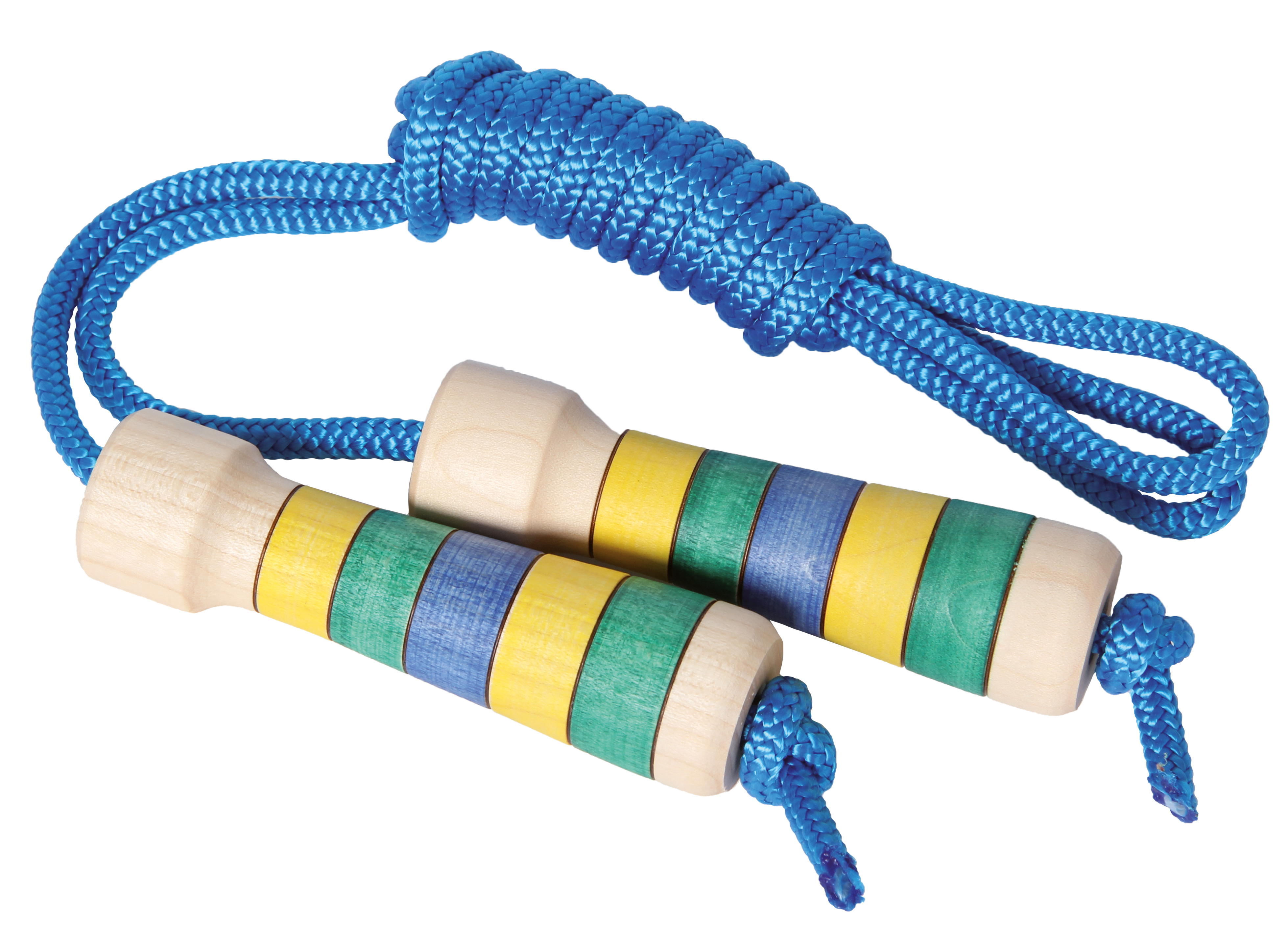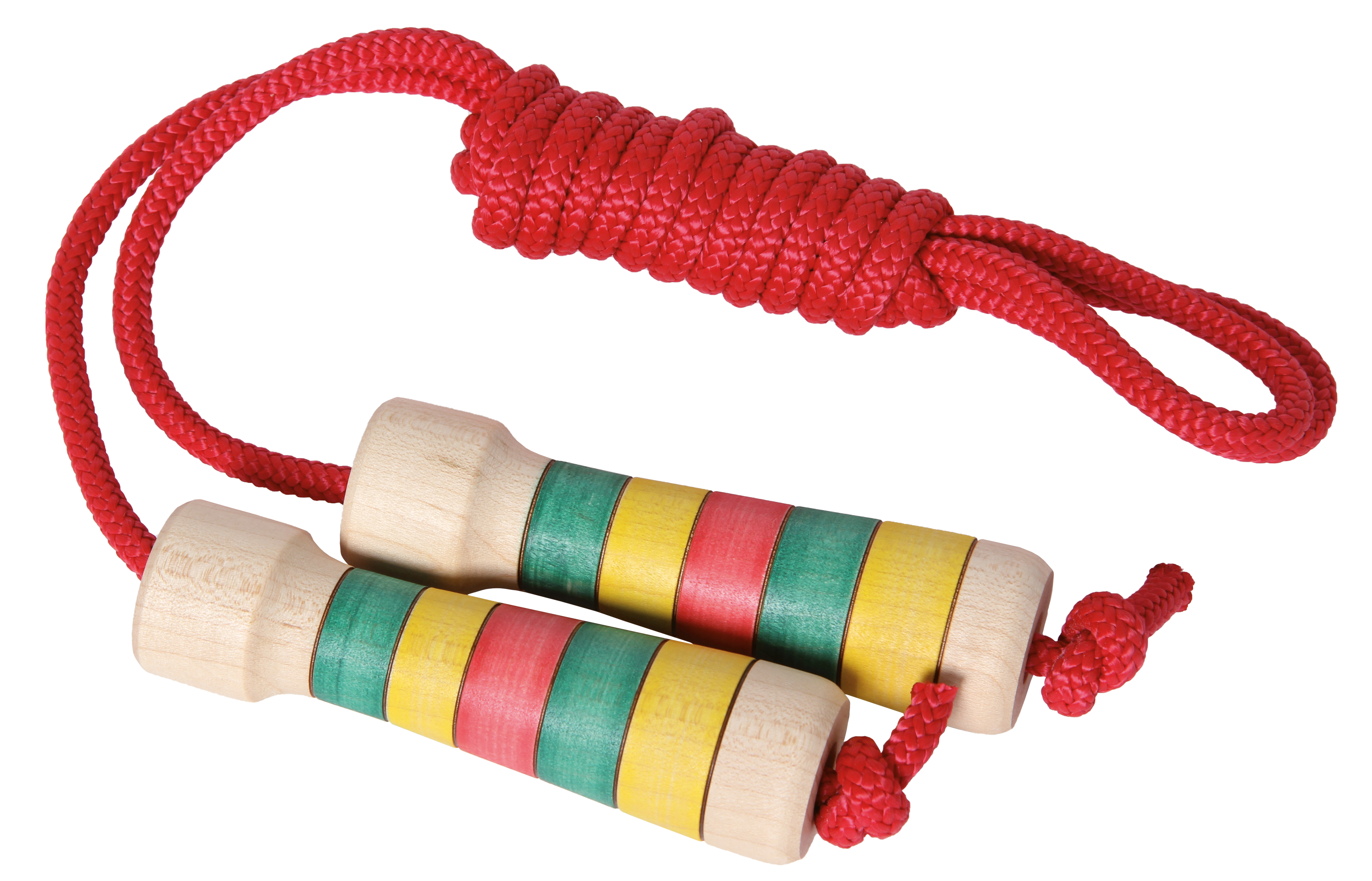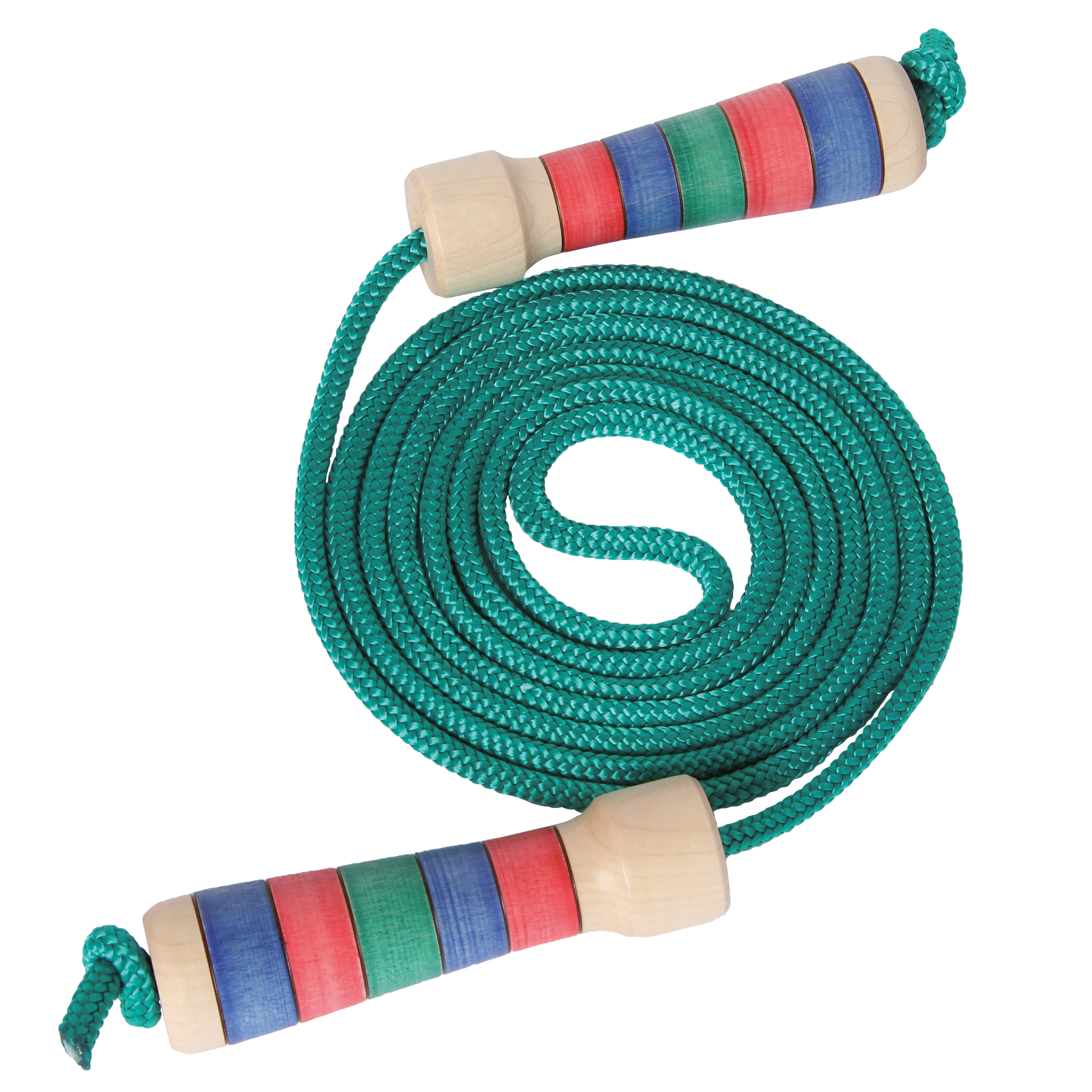 Das farbenfrohe Sringseil mit 2,4 m langem Seil ist passend für eine Körpergröße bis 1,6m. Die durchgebohrten Griffe ermöglichen eine individuelle Längenanpassung des Seils. Griffe aus Ahorn / Esche in 4 verschiedenen Designs.