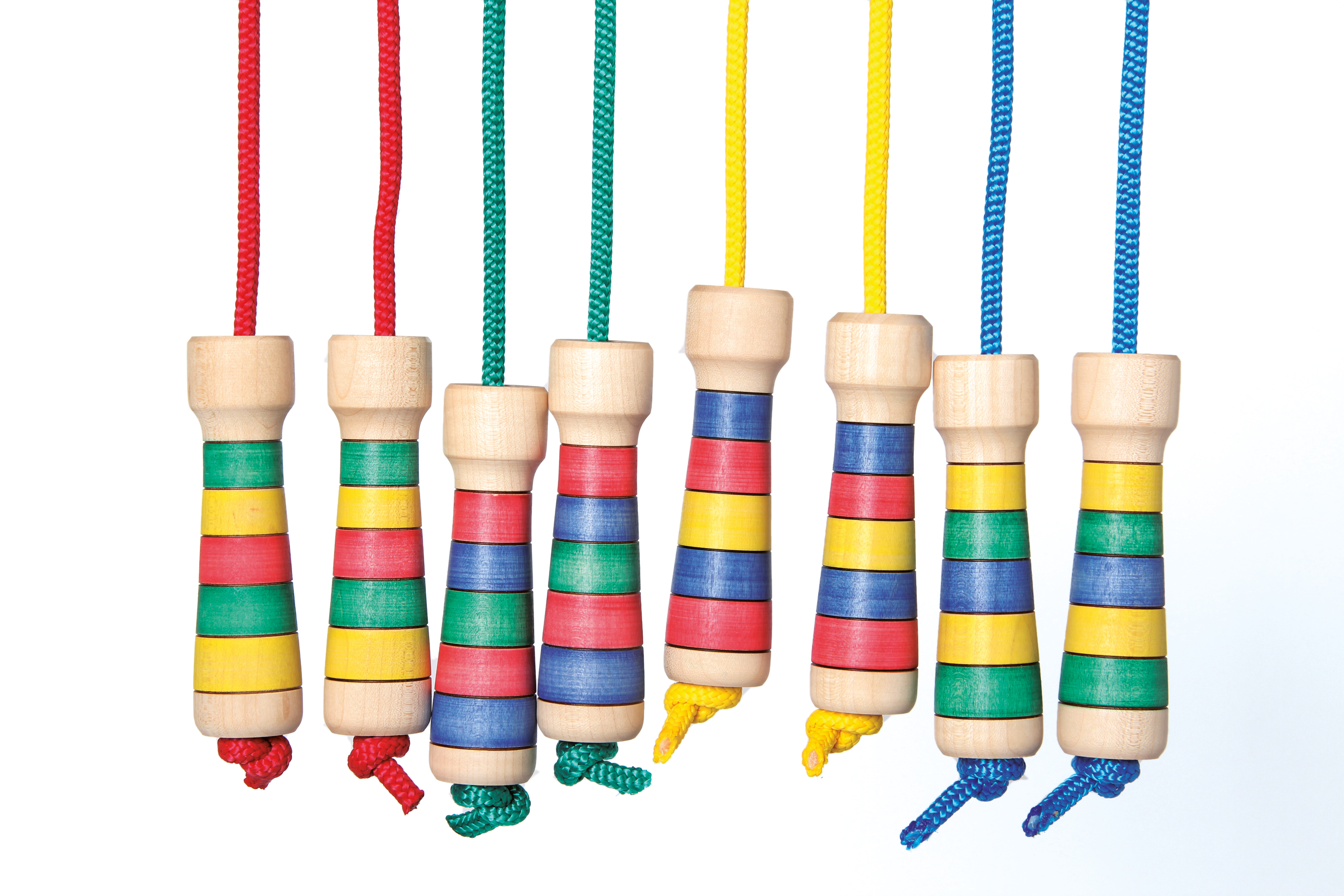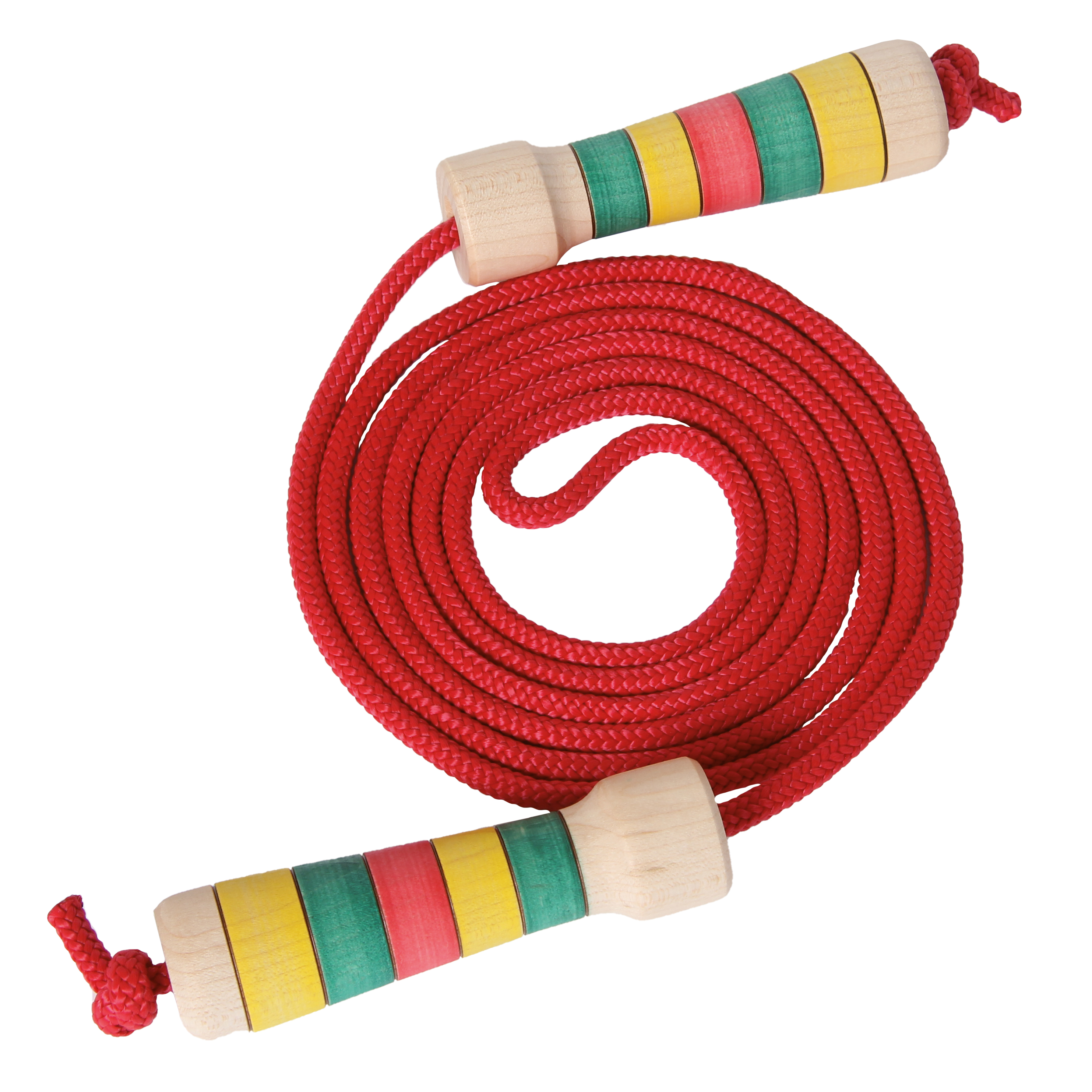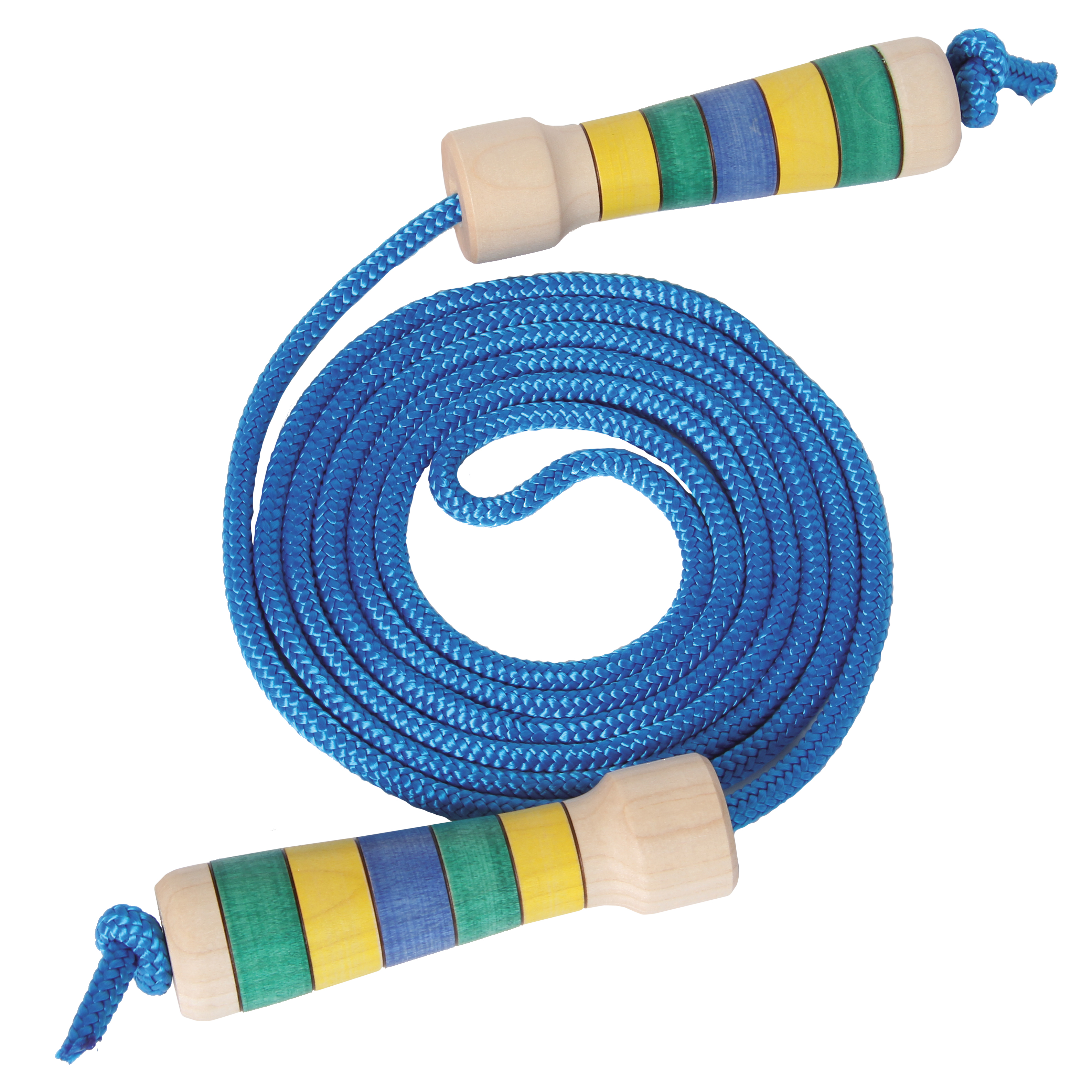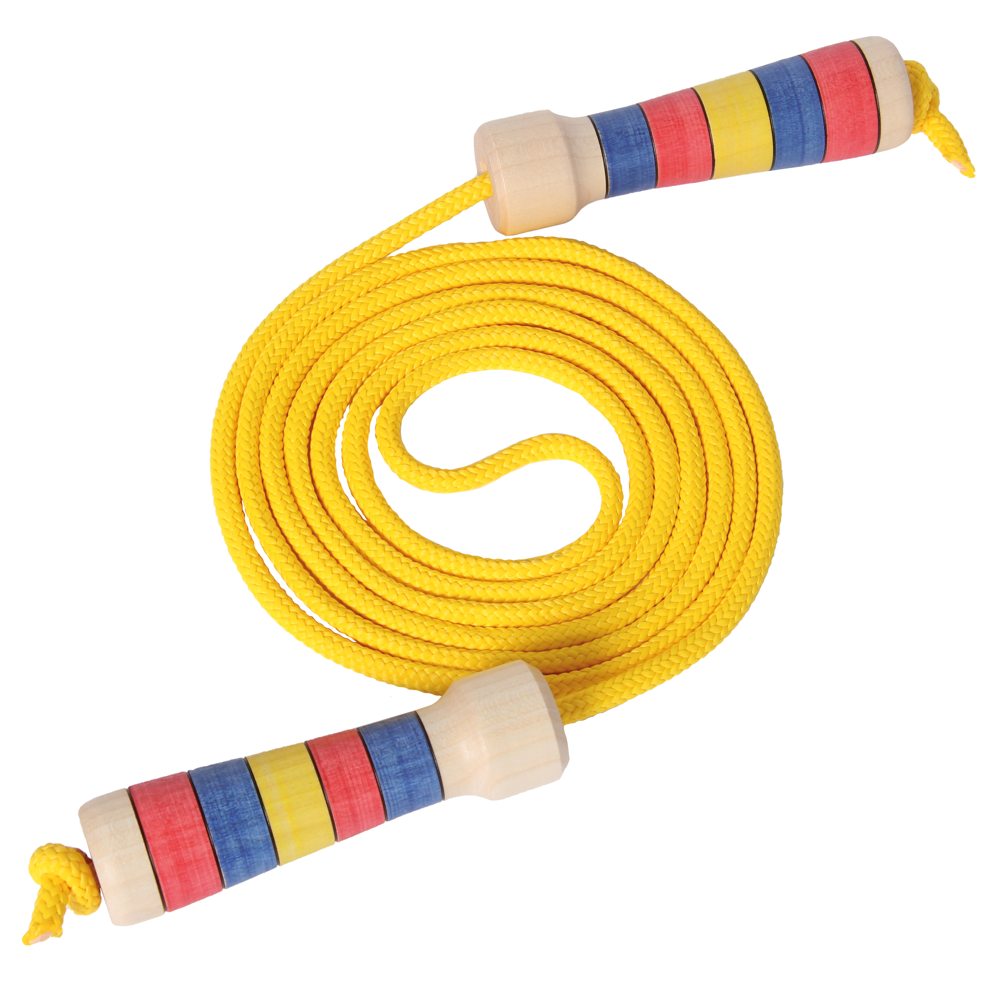 Das farbenfrohe Sringseil mit 2,4 m langem Seil ist passend für eine Körpergröße bis 1,6m. Die durchgebohrten Griffe ermöglichen eine individuelle Längenanpassung des Seils. Griffe aus Ahorn / Esche in 4 verschiedenen Designs.