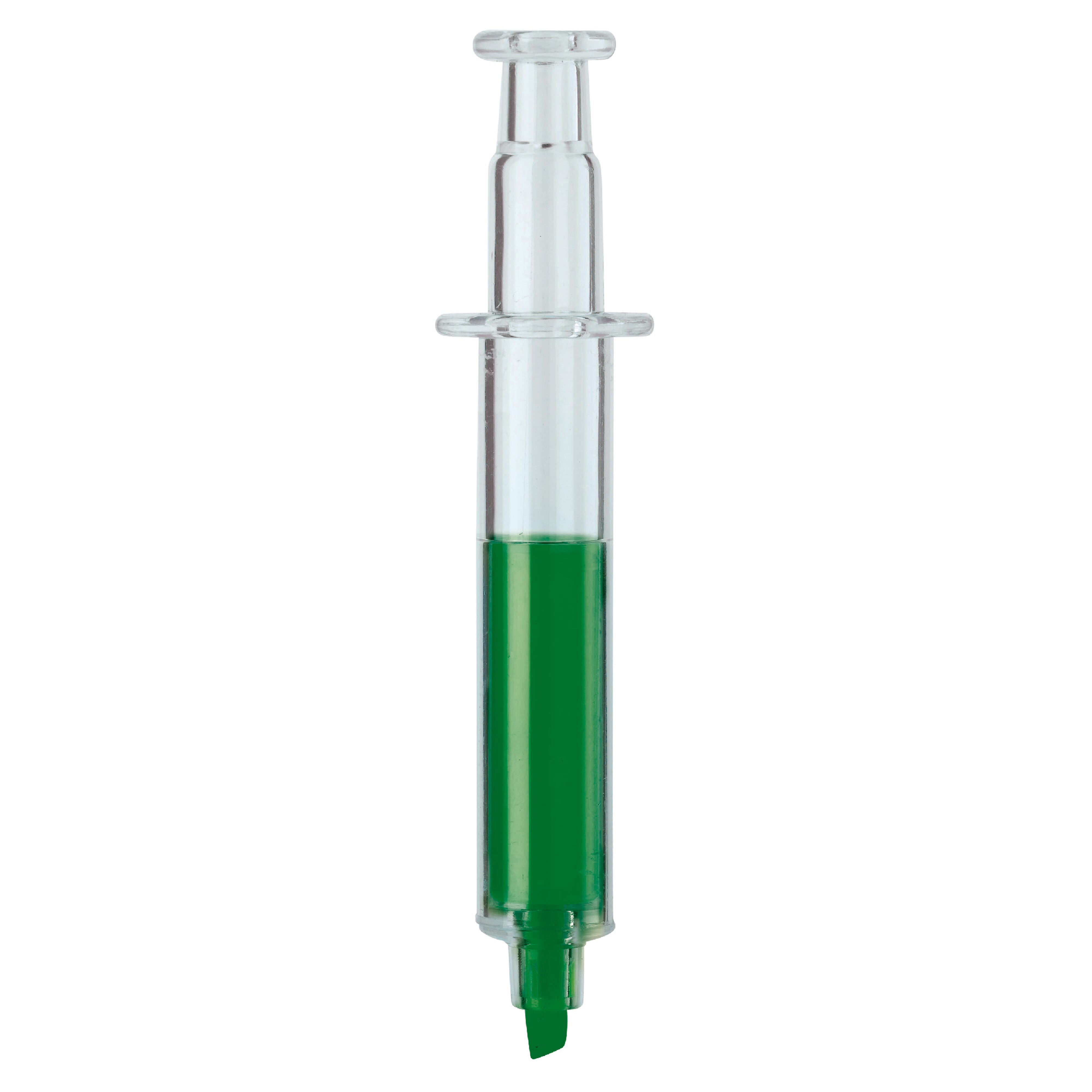 Transparenter Spritzen-Textmarker. Die Farbe gibt die Schreibfarbe an.