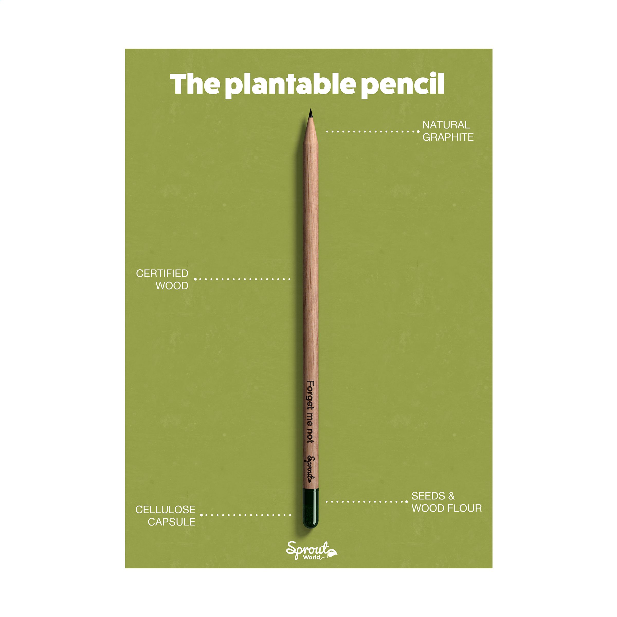 Sproutworld-Bleistift mit einer inspirierenden Botschaft für die Natur. Dieser ungespitzte Bleistift ist aus Holz gefertigt. Am Ende des Bleistifts ist eine Kapsel (aus Zellulose) angebracht, die einige Samen enthält. Wenn der Stift zu klein geworden ist, um ihn zu verwenden, pflanzen Sie den Stift mit der Kapsel in die Erde. Nach etwa 2–3 Wochen keimen die Samen und entwickeln sich zu wunderschönen Blumen, duftenden Kräutern oder Gemüse. Wählen Sie aus verschiedenen Typen. Der Name der Pflanze ist standardmäßig in den Bleistift eingraviert. Der Bleistift enthält kein Blei und ist daher völlig sicher. Made in Europe. Zusatzartikel W387: Bunte Karte aus Karton zum Einlegen des Bleistifts. Die Karte enthält englischsprachige Informationen über das Produkt und verleiht dem Produkt einen exklusiven Aufmerksamkeitswert.