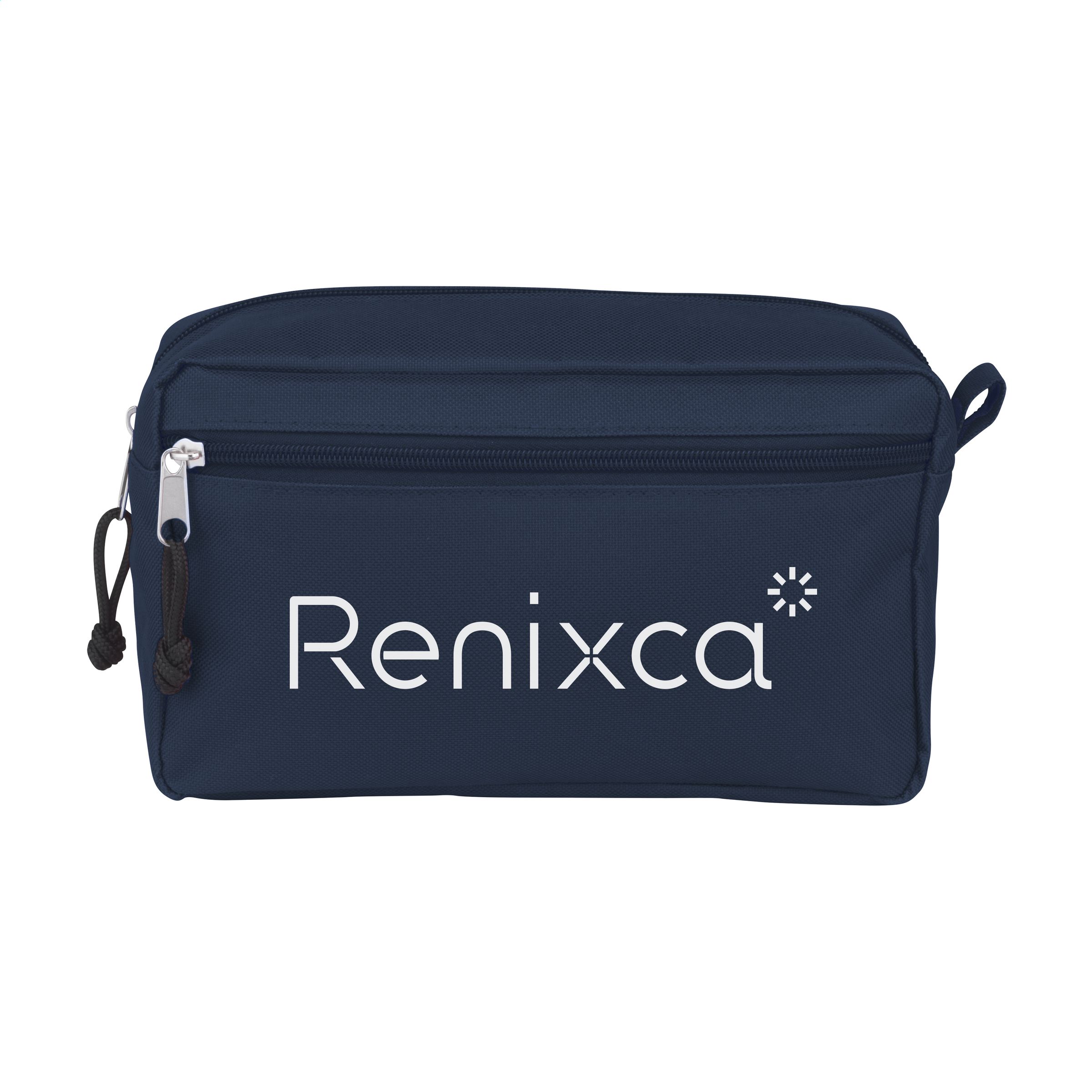 WoW! Eine geräumige Tasche zum Aufbewahren von Make-up oder Toilettenartikeln. Dieses Produkt wird aus 600D-RPET-Polyester hergestellt, einem Material aus recycelten PET-Flaschen und Textilfasern. Ausgestattet mit einer Schlaufe und extra Reißverschlussfach. GRS-zertifiziert. Recyceltes Material insgesamt: 90%.