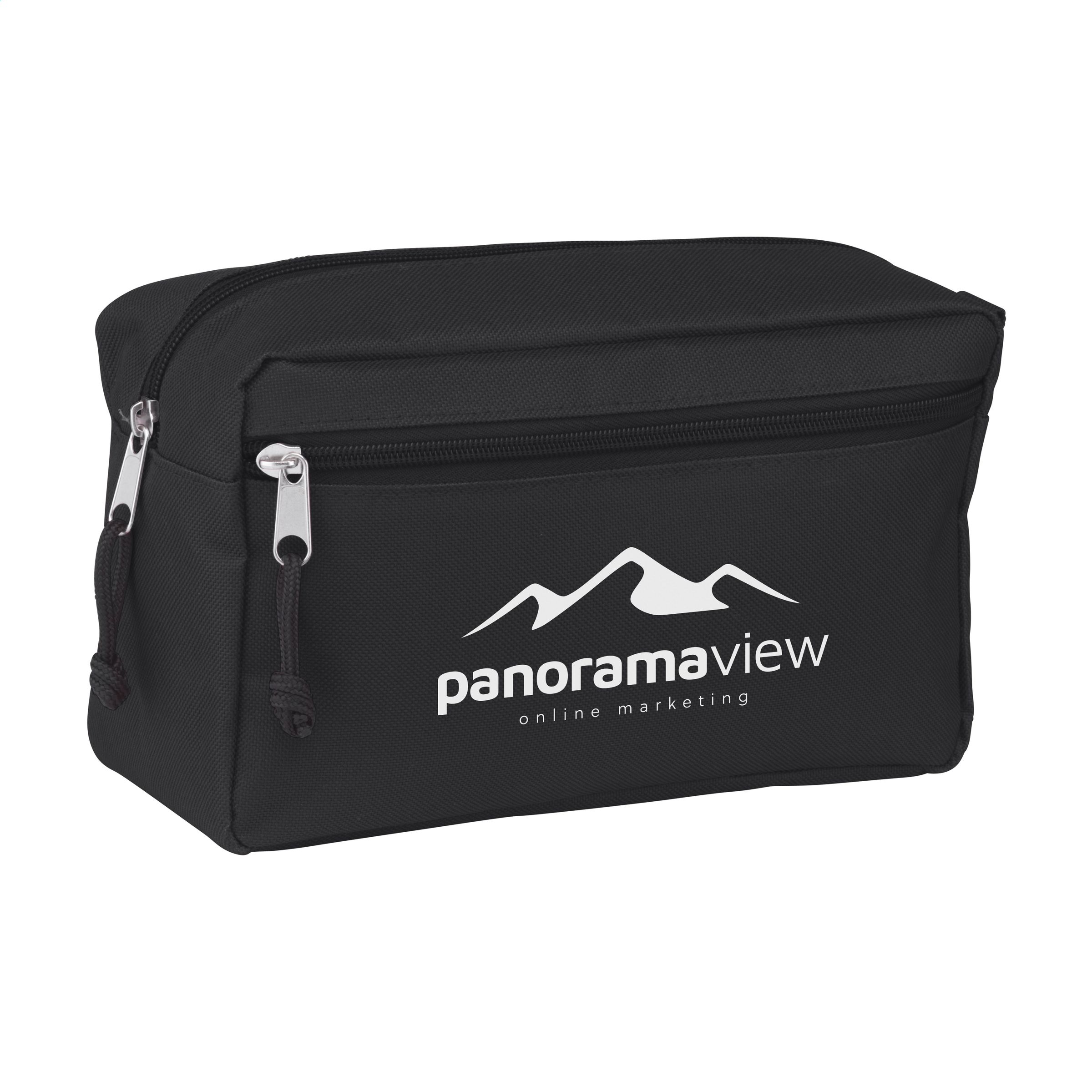 WoW! Eine geräumige Tasche zum Aufbewahren von Make-up oder Toilettenartikeln. Dieses Produkt wird aus 600D-RPET-Polyester hergestellt, einem Material aus recycelten PET-Flaschen und Textilfasern. Ausgestattet mit einer Schlaufe und extra Reißverschlussfach. GRS-zertifiziert. Recyceltes Material insgesamt: 90%.