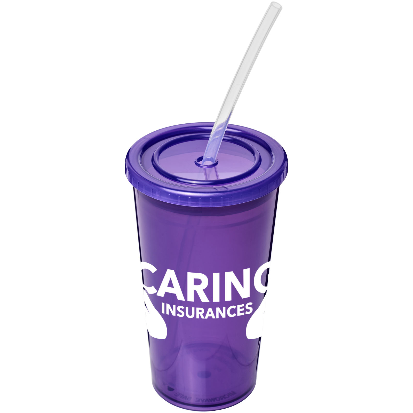 Doppelwandiger, lichtdurchlässiger Isolierbecher. Lieferung mit PE-Strohhalm. Das Fassungsvermögen beträgt 350 ml. Hergestellt in Großbritannien. EN12875-1 - konform und spülmaschinengeeignet.