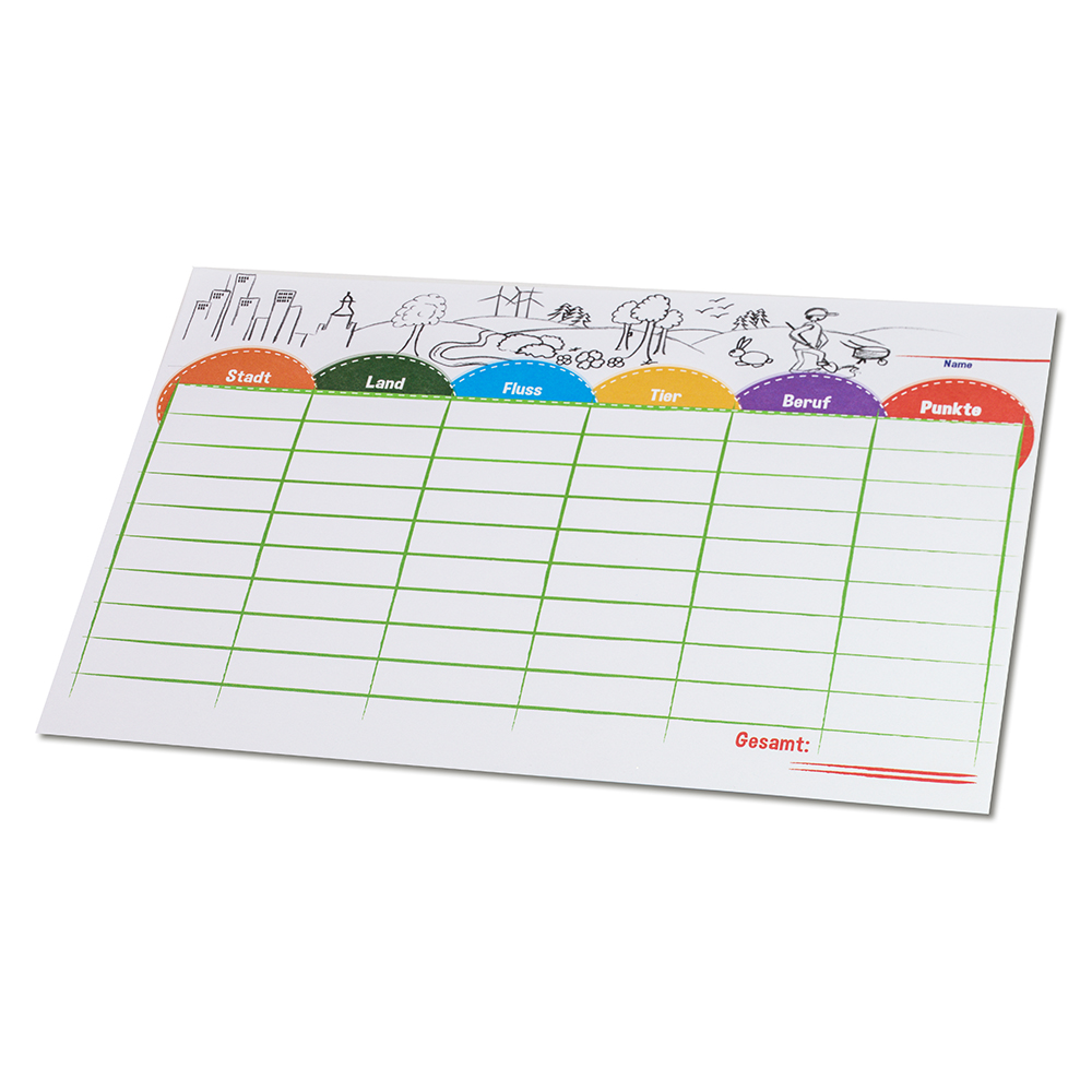 Unser Stadt-Land-Fluss Block ist der ideale Begleiter für Spieleabende oder unterwegs. Der Block enthält 25 Blätter des beliebten Spiels, das für jede Altersgruppe geeignet ist und garantiert für viel Spaß sorgt. Zwei Varianten stehen zur Auswahl: • Block einzeln. • Set: Enthält zusätzlich eine praktische 6er-Buntstiftbox (Standardgestaltung), geliefert in einer hochwertigen, bedruckten Mappe. Veredelungsmöglichkeiten: • Standardausführung: Ab Lager lieferbar, optional mit zusätzlichem Logoeindruck. • Individuelle Gestaltung: Ab 500 Stück mit personalisierten Außenseiten für ein einzigartiges Design.
