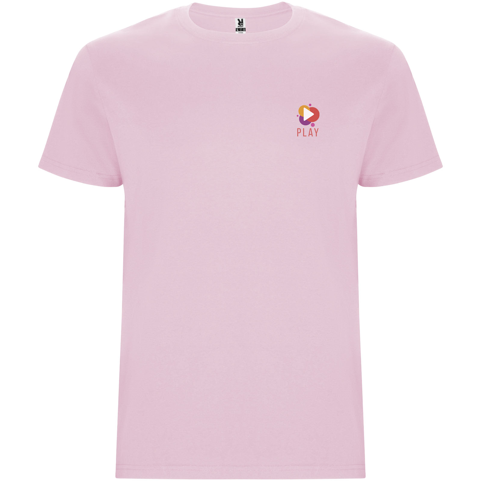 Schlauchförmiges kurzärmeliges T-Shirt. Rundhalsausschnitt mit Elasthan. Seitennähte. Herausnehmbares Etikett.