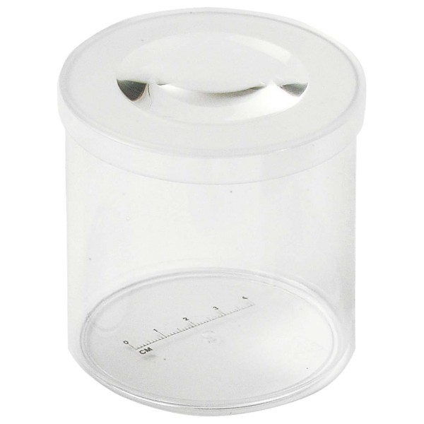 Praktisches Vergrößerungsglas mit 4 cm Messskala im Boden. Einfach auf die zu vergrößernde Abbildung stellen.