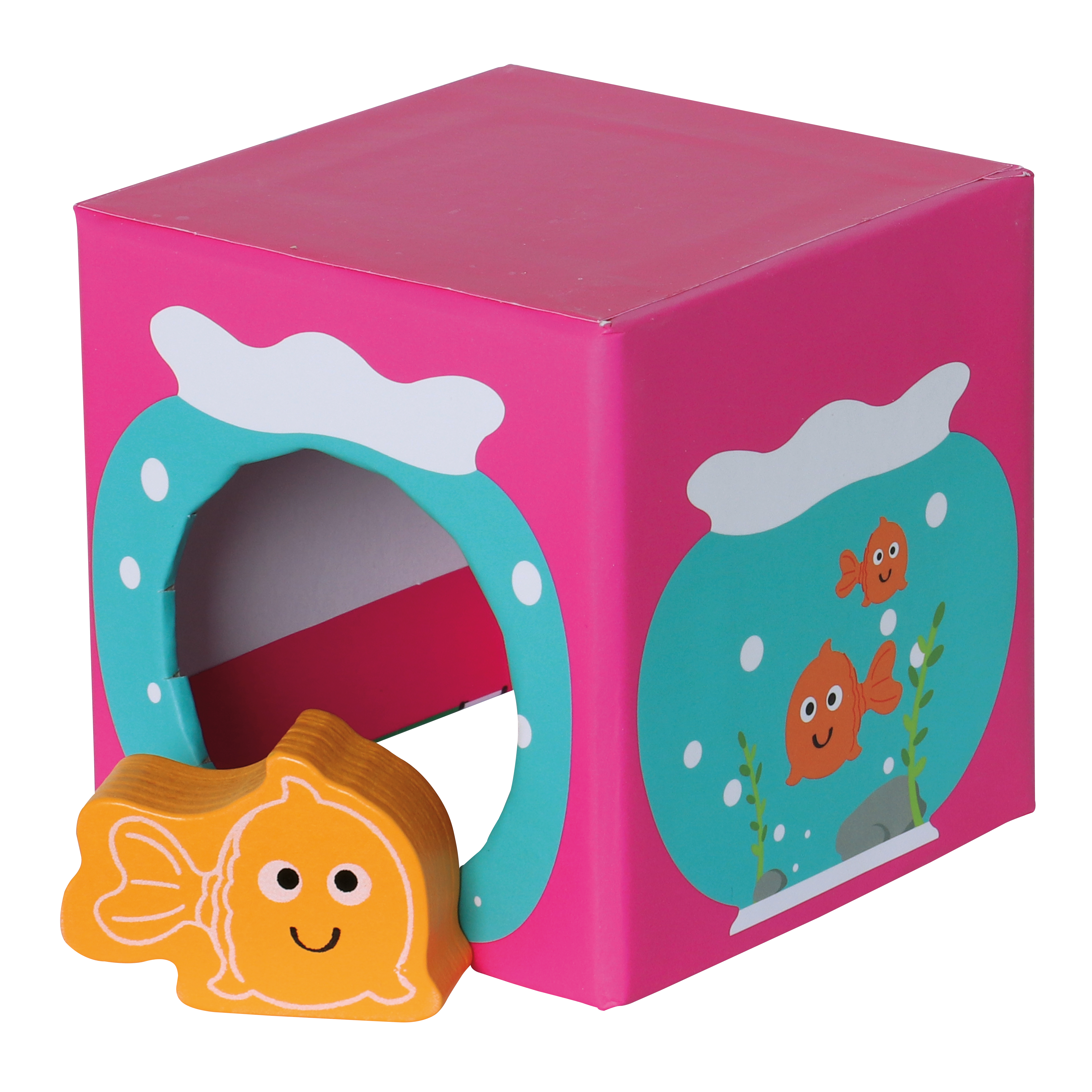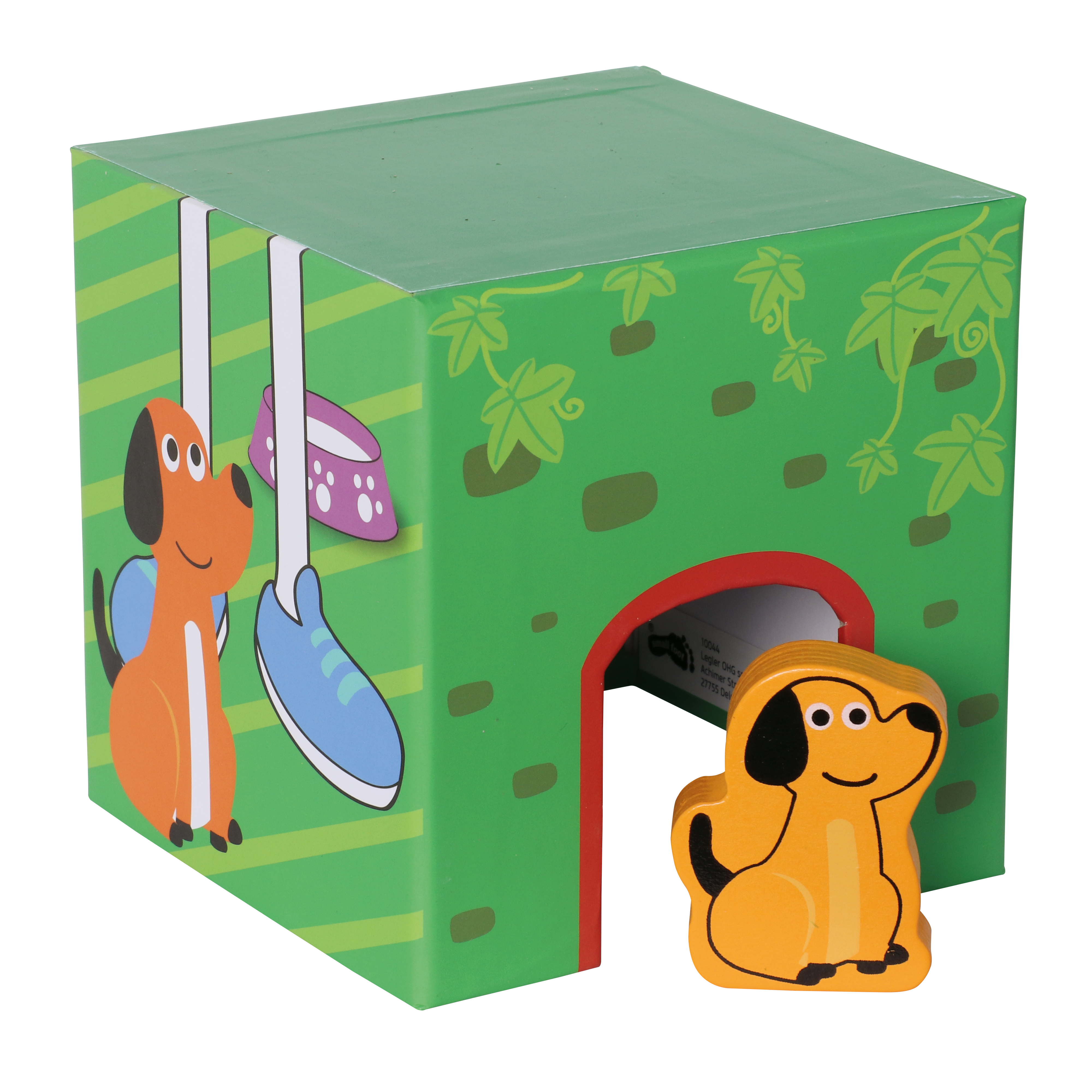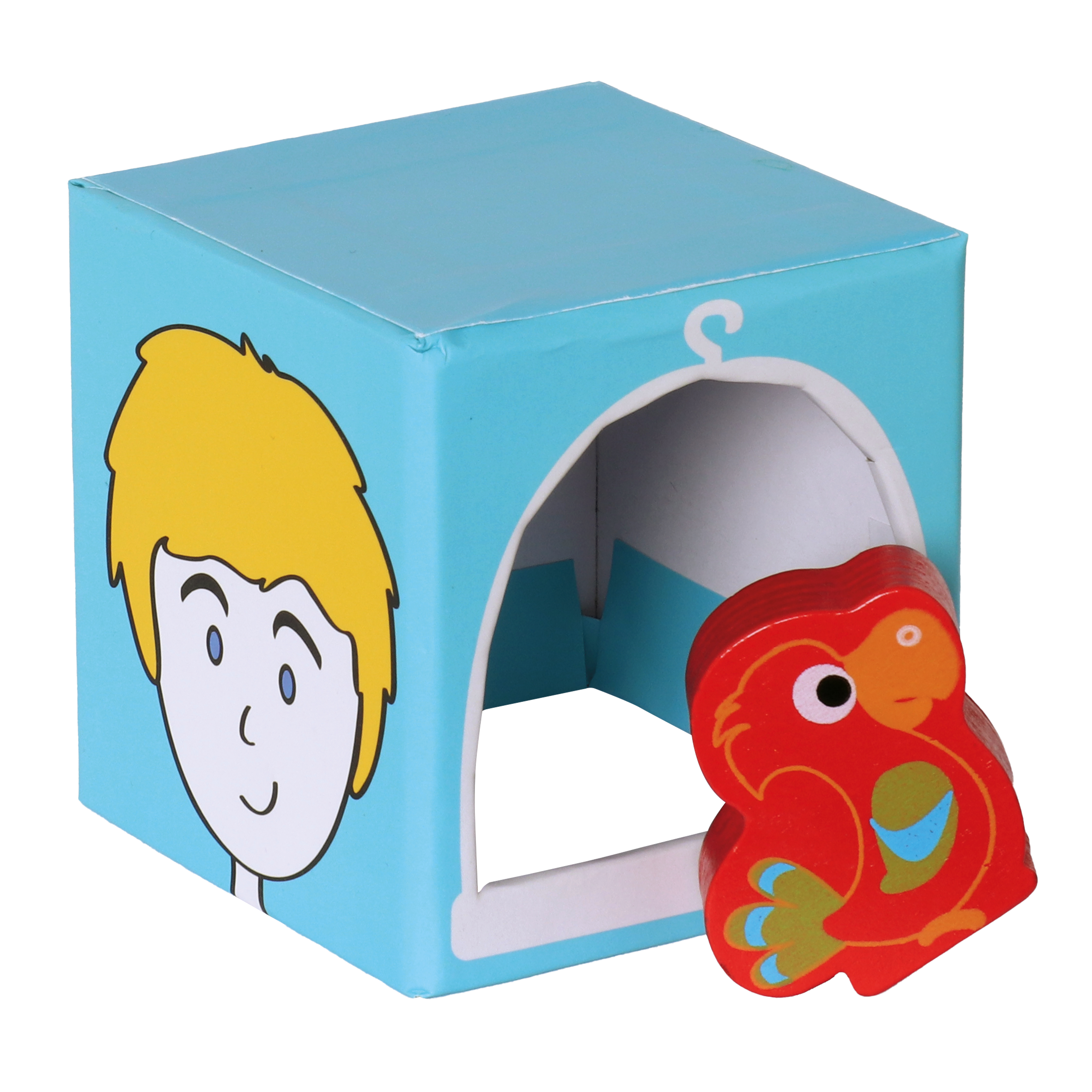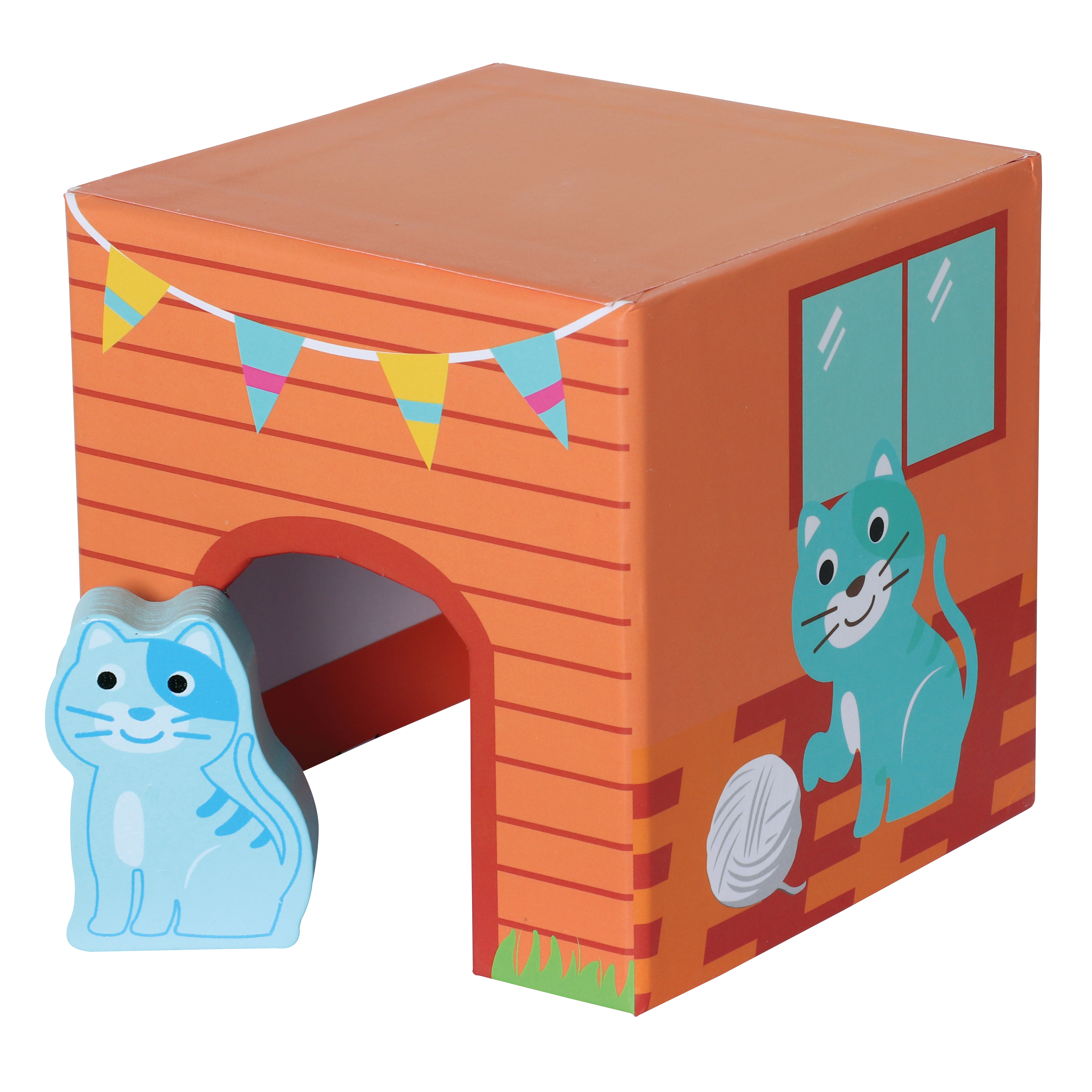 Hier herrscht ein buntes Treiben. Denn alle Haustiere müssen ihrem richtigen Schlafplatz zugeordnet werden! Die unterschiedlichen großen Würfel können so aufeinandergestellt werden, dass an der Seite das Herrchen der süßen Tiere erscheint. Hochstapler aufgepasst! Wer baut den höchsten Turm? In der richtigen Reihenfolge ergeben die Würfel aus stabiler Pappe verschiedene Motive. Alle Stapelwürfel haben eine Öffnung, in der sechs verschiedene Holztiere ihr Zuhause finden. Empfohlen für Kinder ab 12 Monaten.
