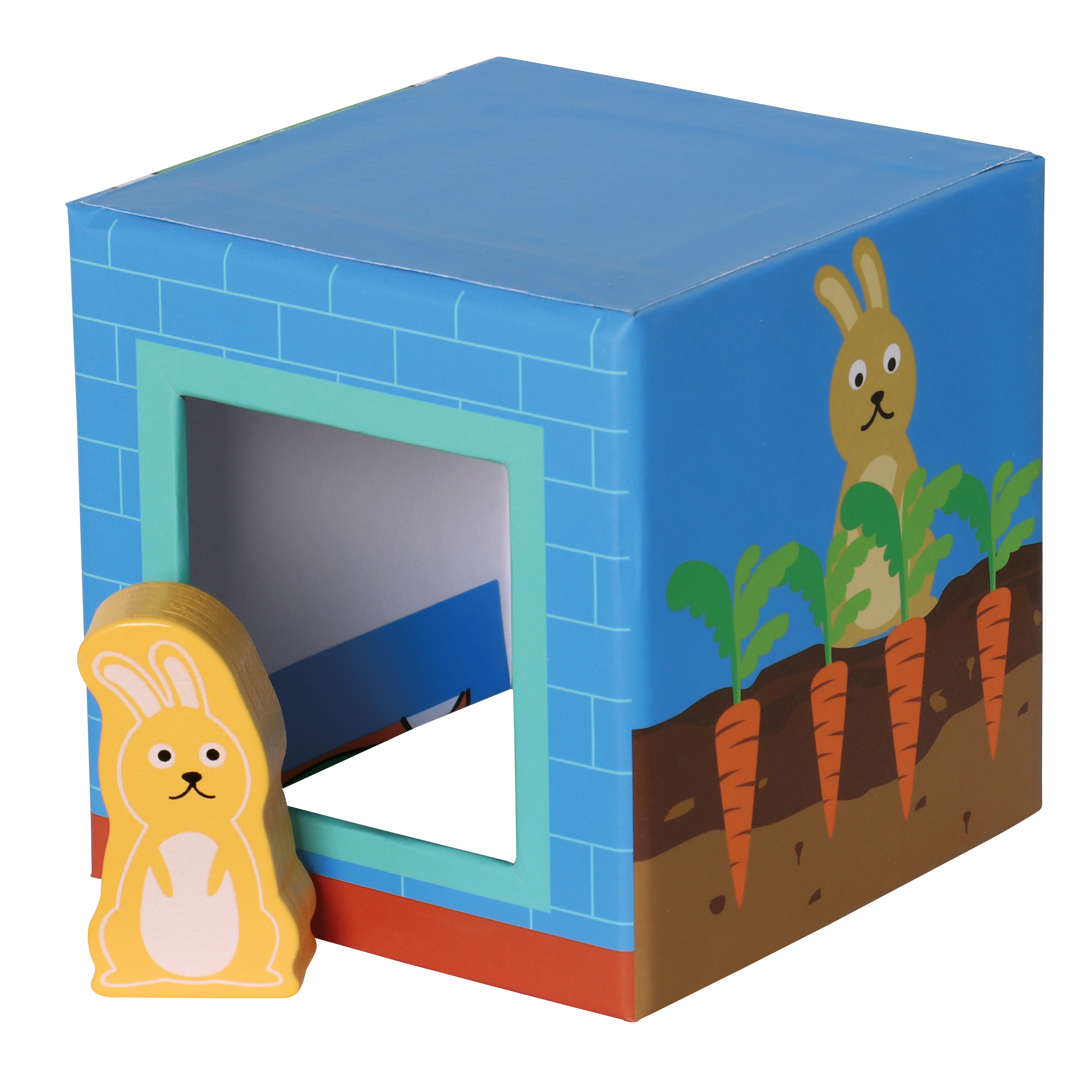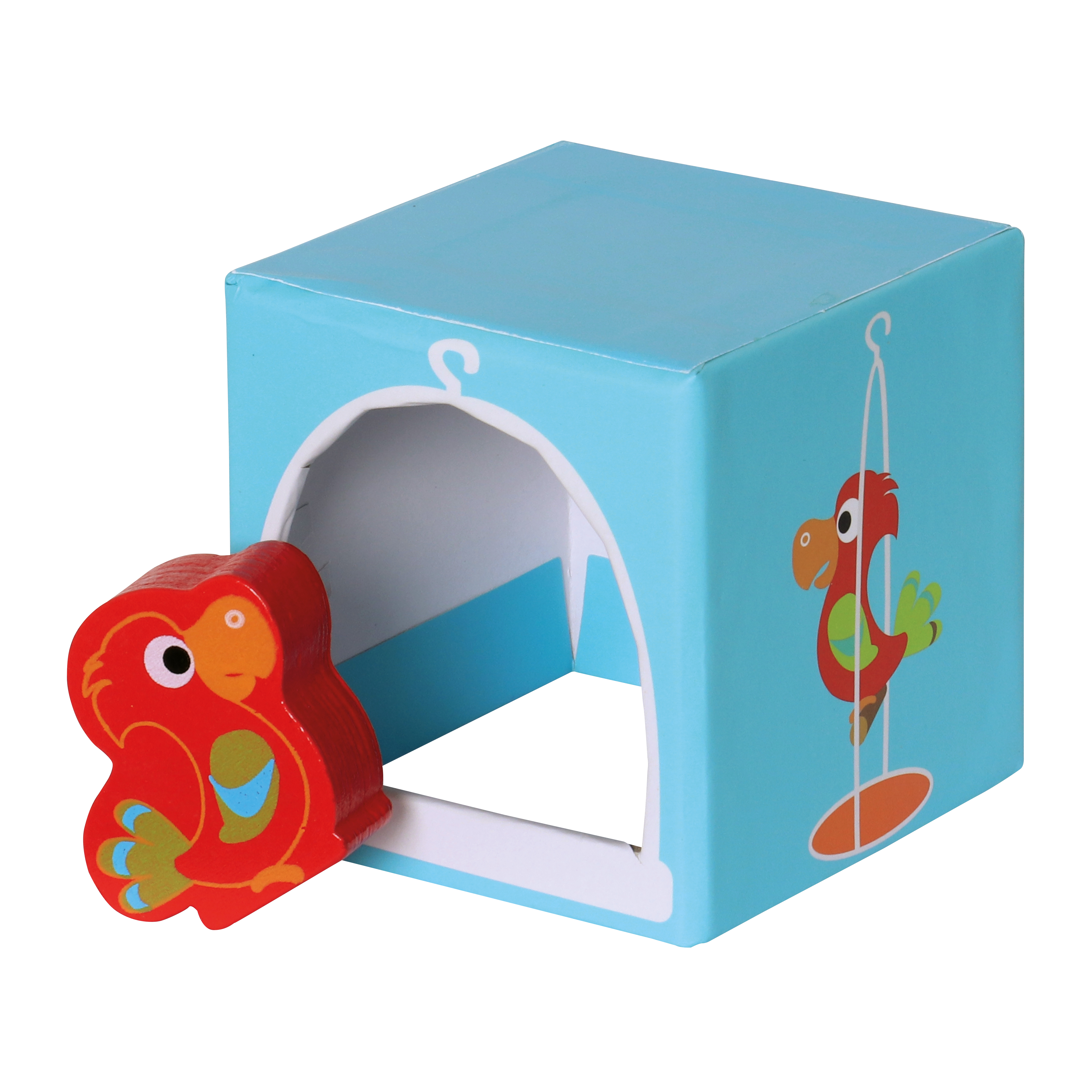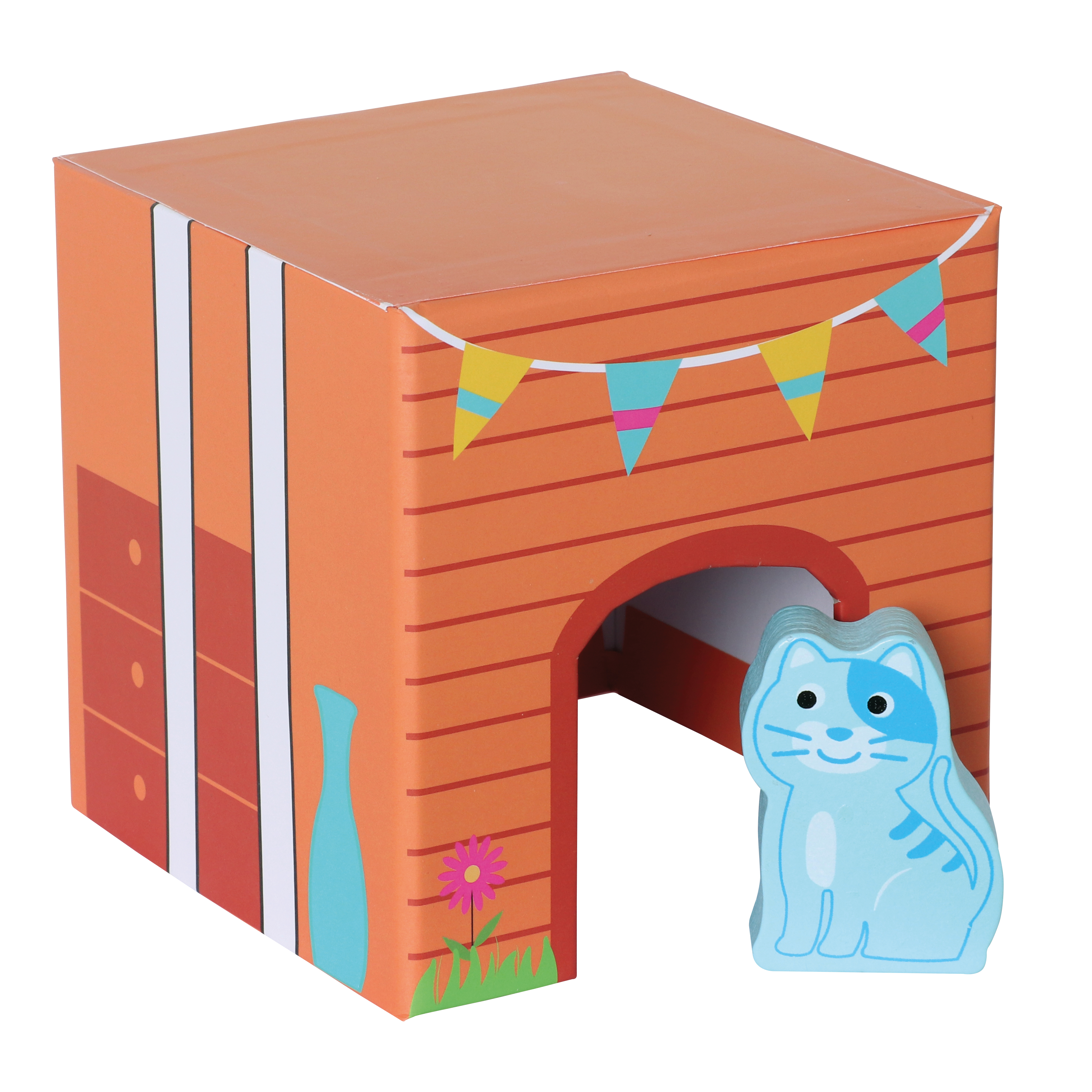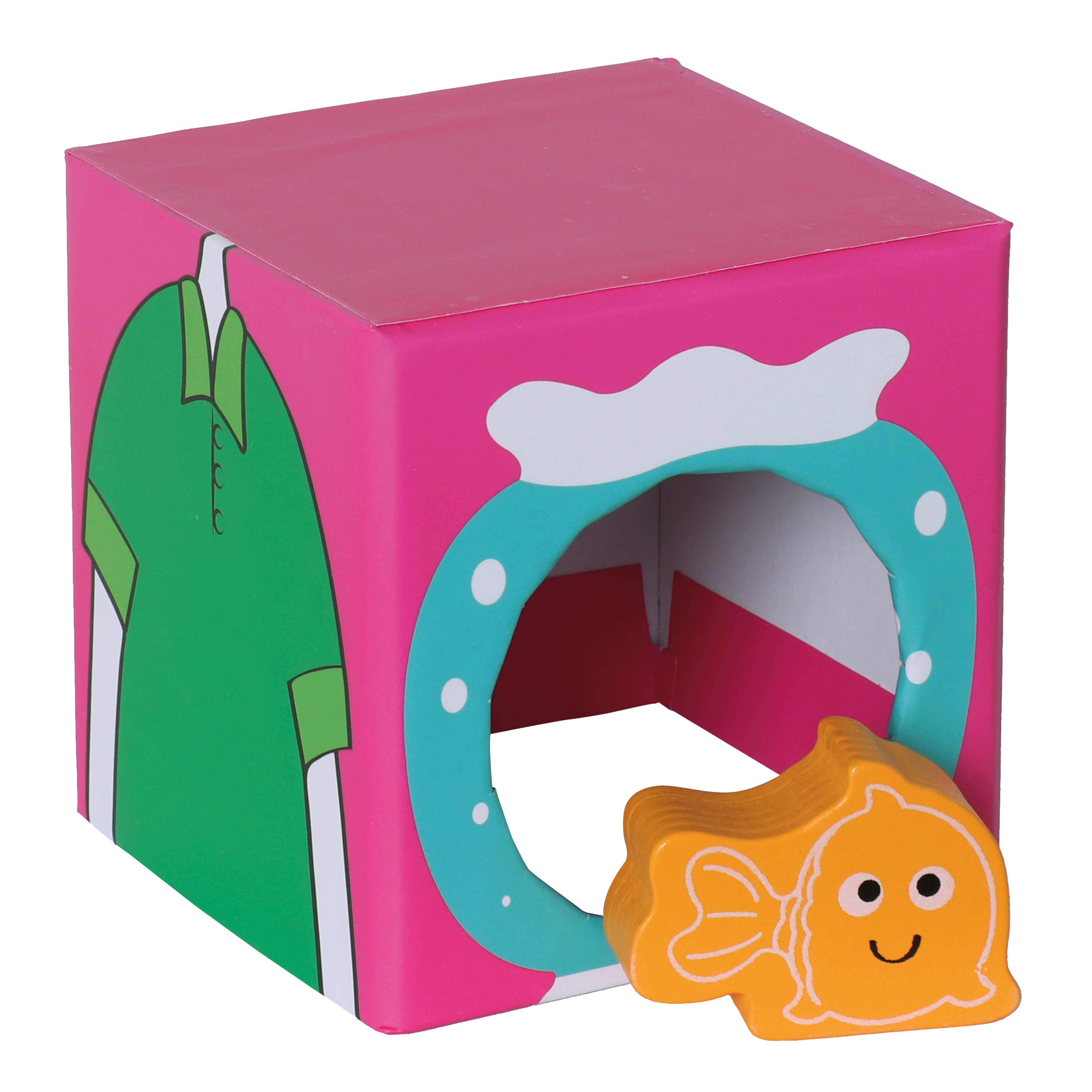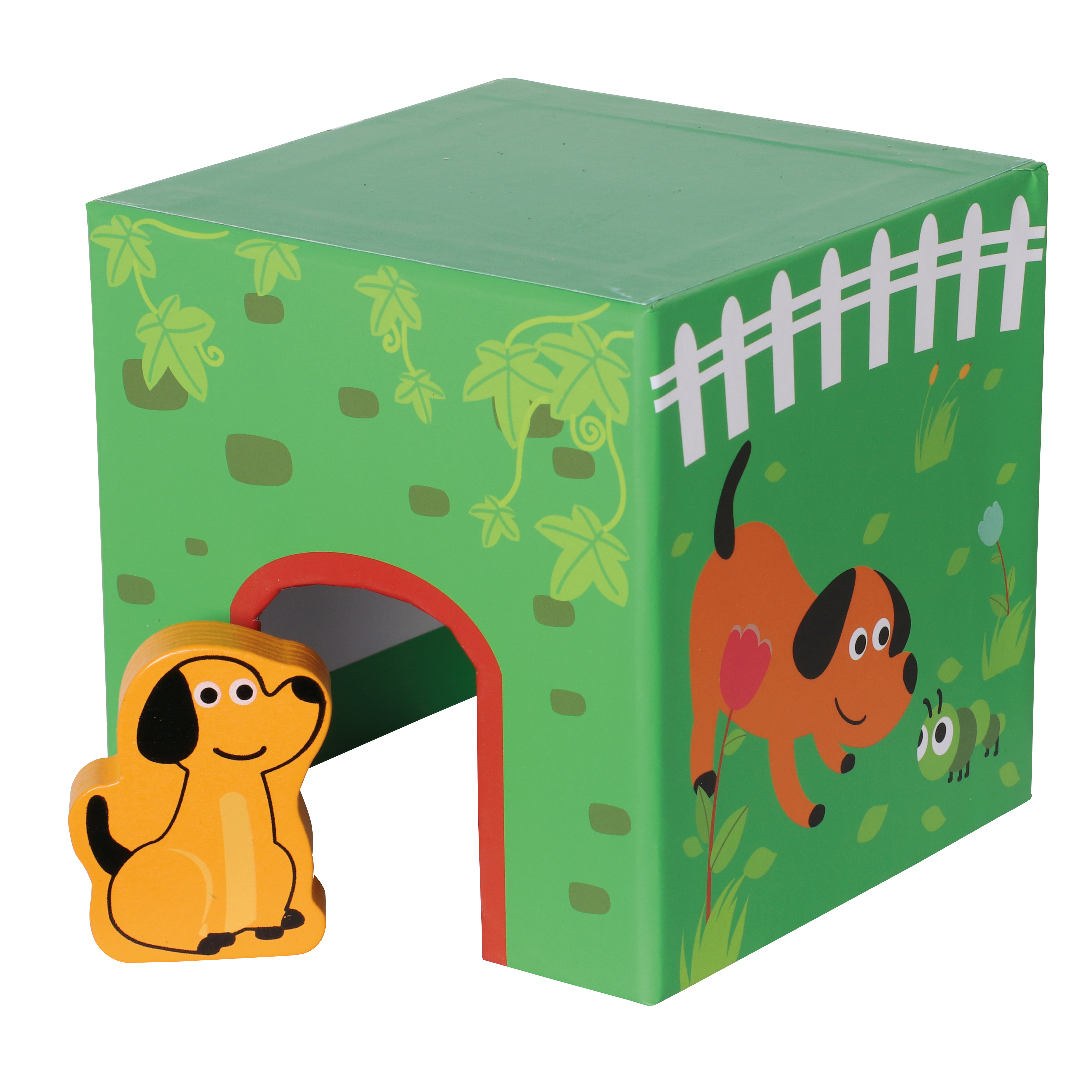 Hier herrscht ein buntes Treiben. Denn alle Haustiere müssen ihrem richtigen Schlafplatz zugeordnet werden! Die unterschiedlichen großen Würfel können so aufeinandergestellt werden, dass an der Seite das Herrchen der süßen Tiere erscheint. Hochstapler aufgepasst! Wer baut den höchsten Turm? In der richtigen Reihenfolge ergeben die Würfel aus stabiler Pappe verschiedene Motive. Alle Stapelwürfel haben eine Öffnung, in der sechs verschiedene Holztiere ihr Zuhause finden. Empfohlen für Kinder ab 12 Monaten.