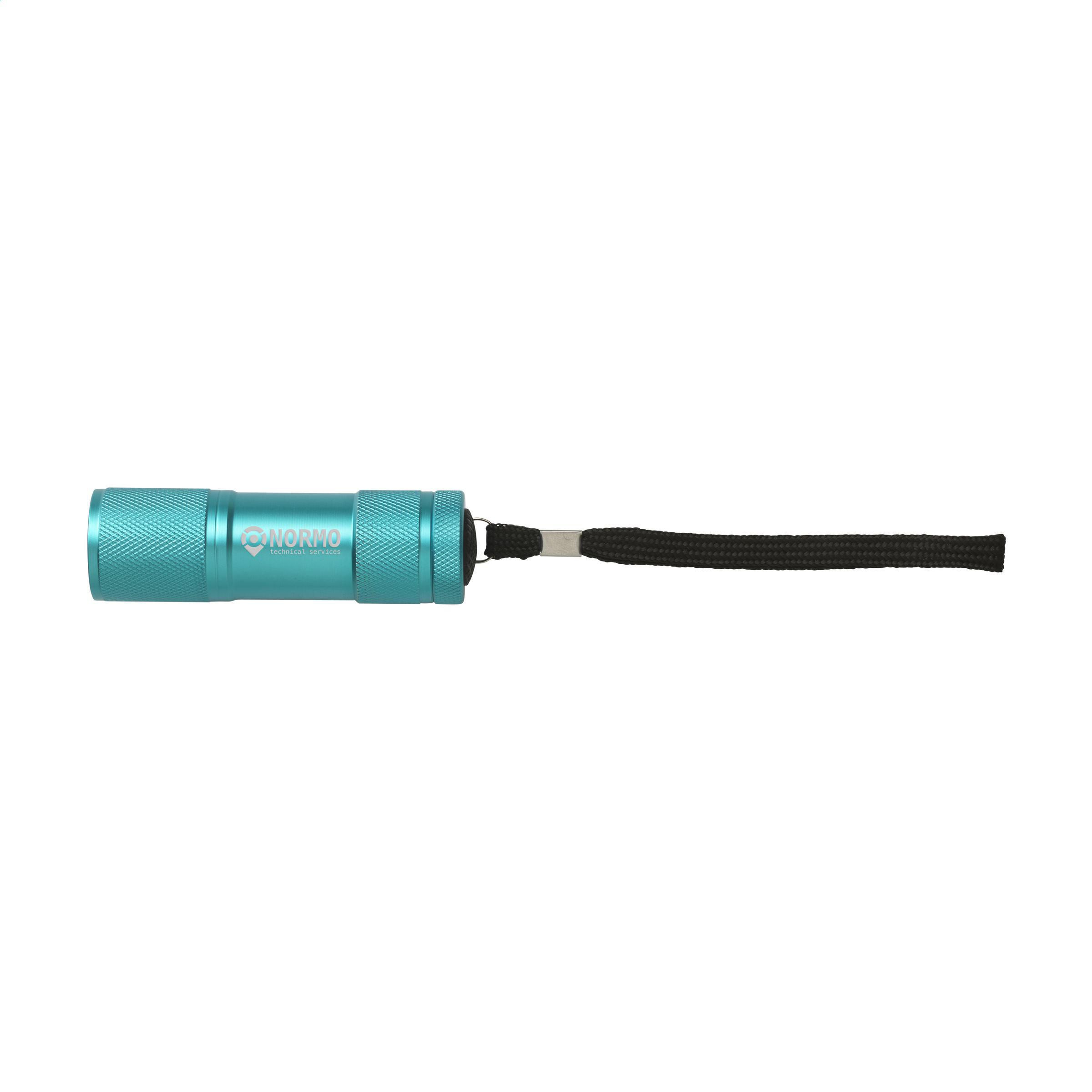 Aluminium-Stablampe mit 9 hellweißen, energiesparenden LED-Lampen und abnehmbarer Schlaufe. Maße: Ø 2,7 x 9 cm. Inkl. Batterien.
