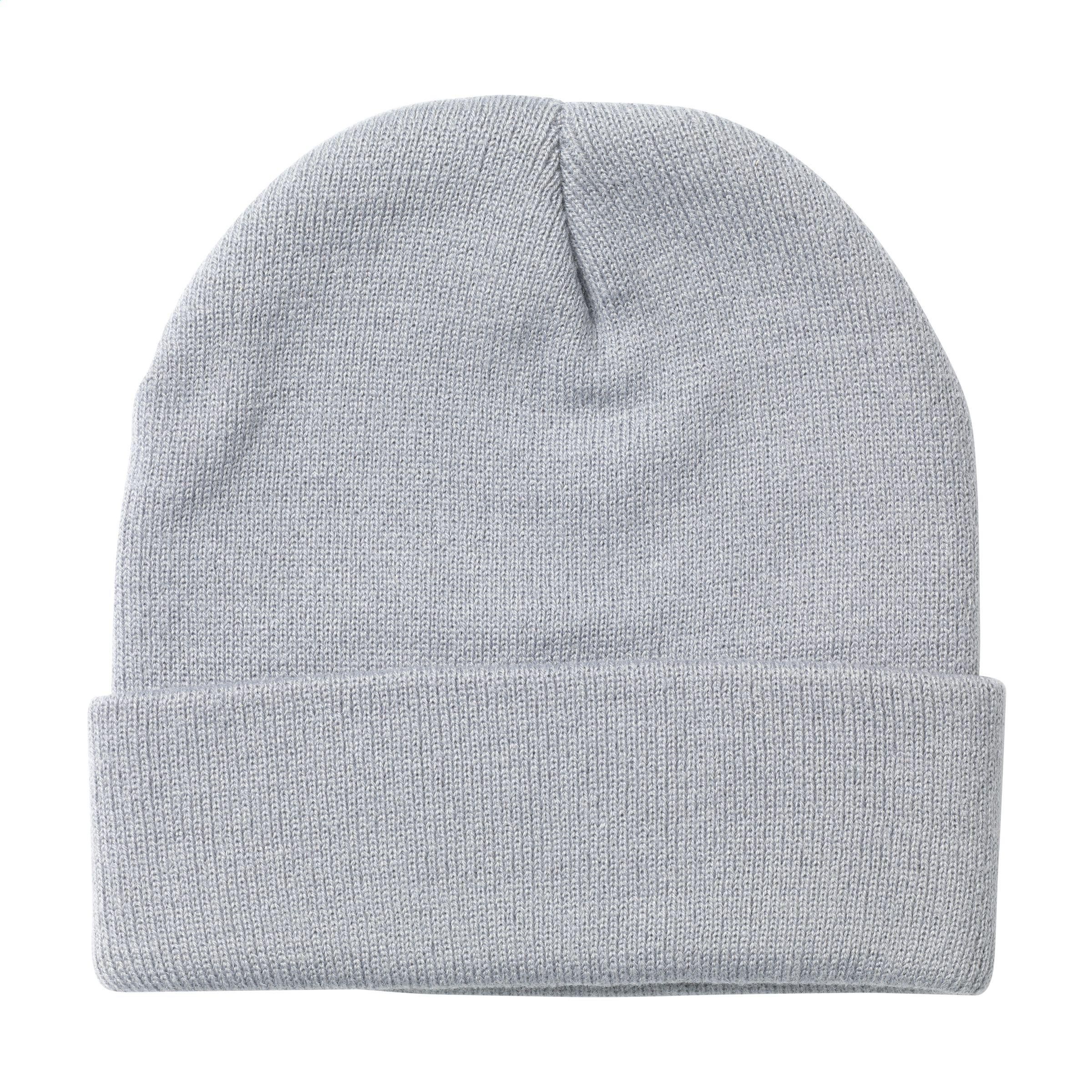 Gestrickte Mütze mit Umschlag. Aus 100% RPET-Polyester. Beliebt, herrlich warm und von guter Qualität. Einheitsgröße. Mit schwarzem Etikett zur Dekoration. GRS-zertifiziert. Recyceltes Material insgesamt: 100%.