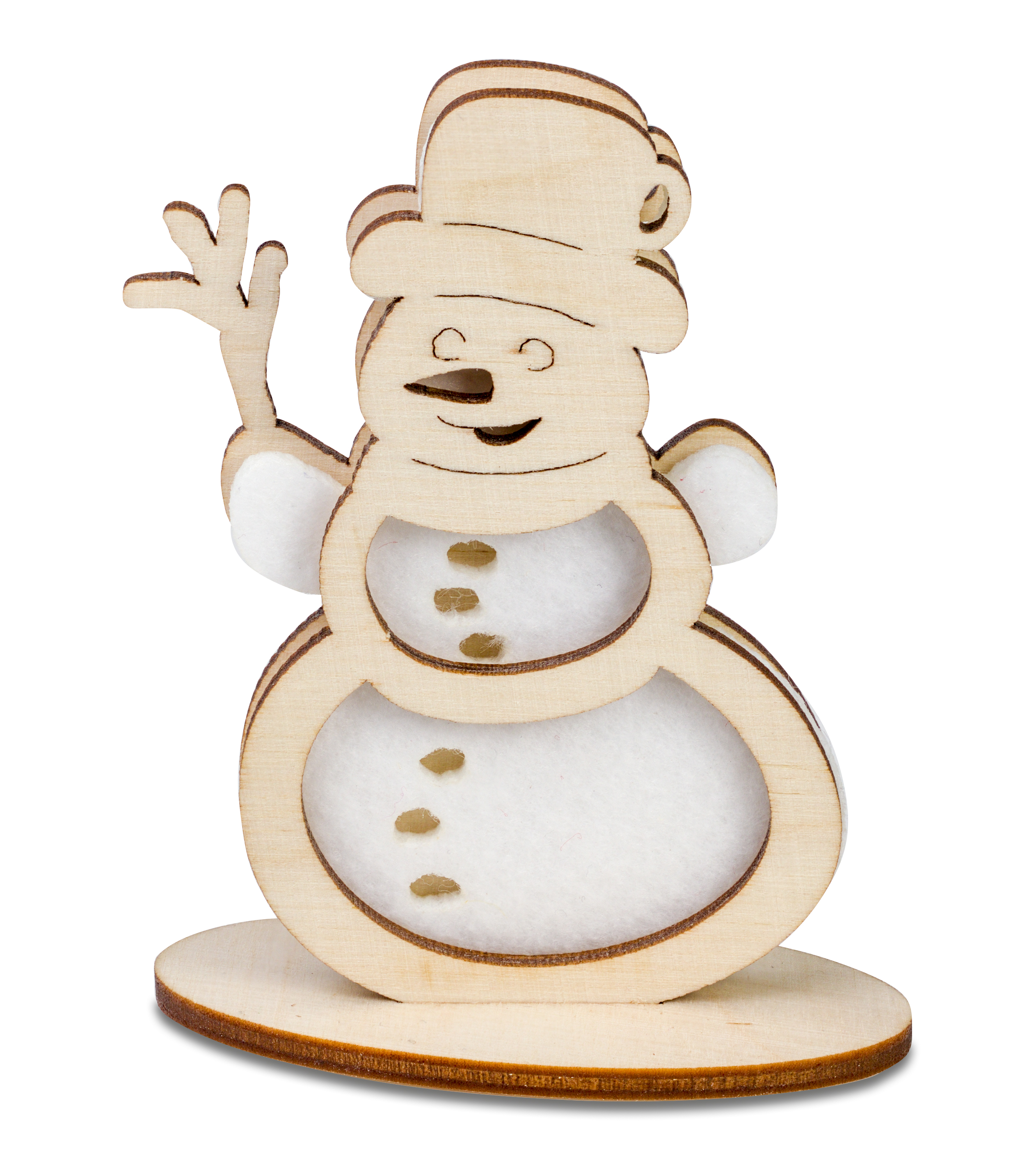 Die beliebten Holz-Filz Steckfiguren gibt es auch in einer Premium-Ausführung. Die dreilagigen Holz-Filz-Holz-Kombinationen, in den Versionen Tannenbaum, Engel und Schneemann, werden mit einem Holzfuß geliefert. So kann die weihnachtliche Steckfigur dekorativ aufgestellt werden oder den Adventskranz und Tannenbaum schmücken. Geliefert wird dieses hochwertige Schmuckstück flach auf einer Karte, die individuell mit Grußbotschaft und Logo (ein- oder beidseitig) bedruckt werden kann – ideal für die Grüße an Kunden zu Weihnachten. DIN lang Umschläge sind optional möglich.