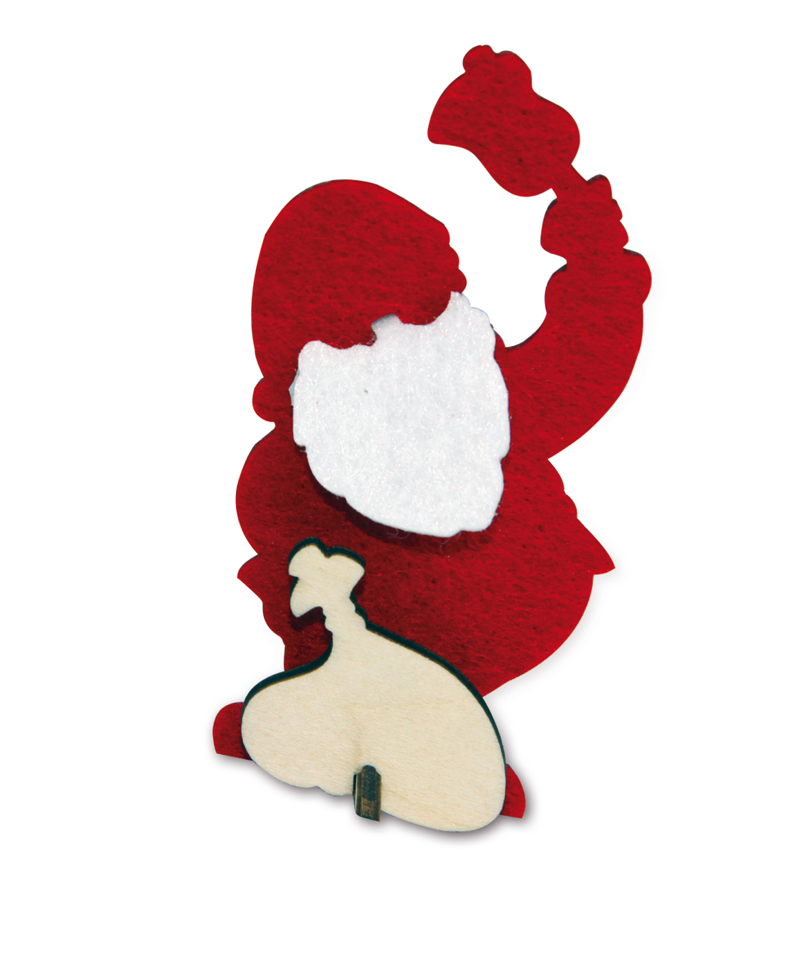 Zusammen basteln: Im Inneren der Karte liegen plano die Teile der jeweiligen Figur, die mit einfachen Handgriffen zusammengesteckt werden. Die Figuren bestehen aus Holz und Filz und sind als Elch, Baum, Stern, Engel, Weihnachtsmann, Wichtel, Kerze, Tannenbaum mit Wendelfilz, Schneemann und Schlitten erhältlich. Die Karte ist mit einer Standardgestaltung versehen. DIN lang Umschläge sind optional möglich.