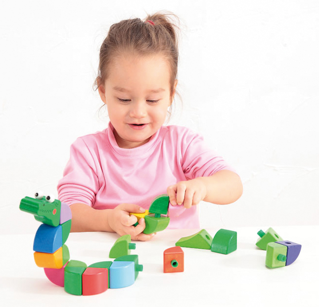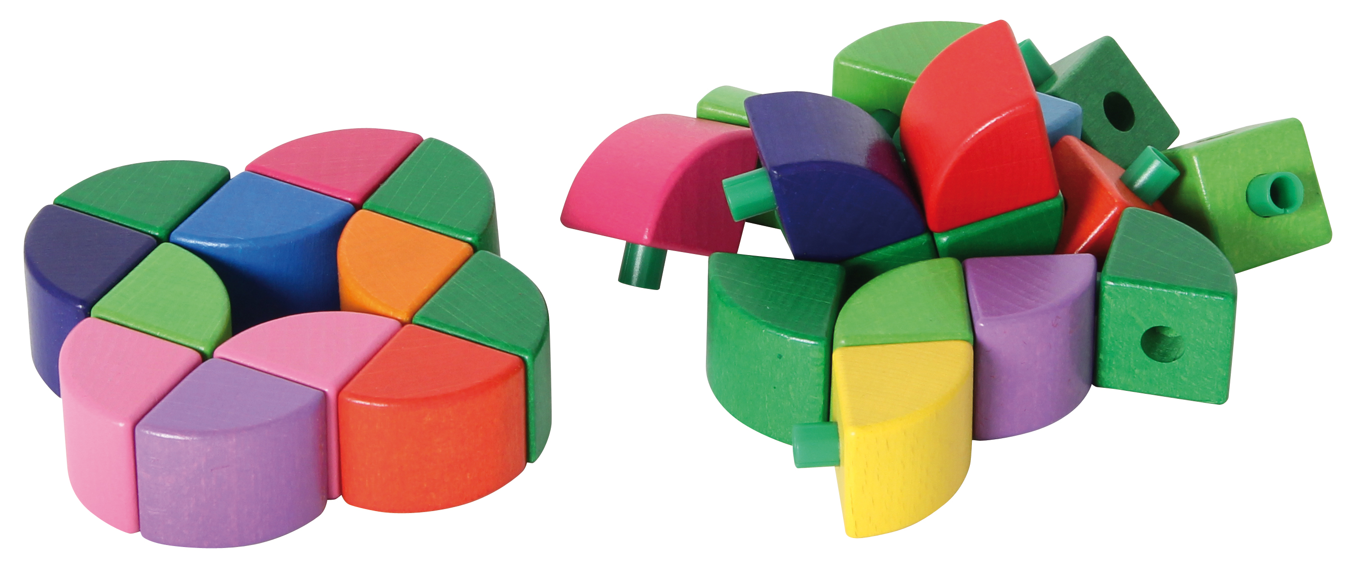 Die 24 farbigen Holzbausteine können beliebig gestapelt, zusammengesteckt oder zu einem fantasievollen Drachen kombiniert werden. So werden Feinmotorik, Farb- und Formerkennung sowie die Kreativität gefördert.