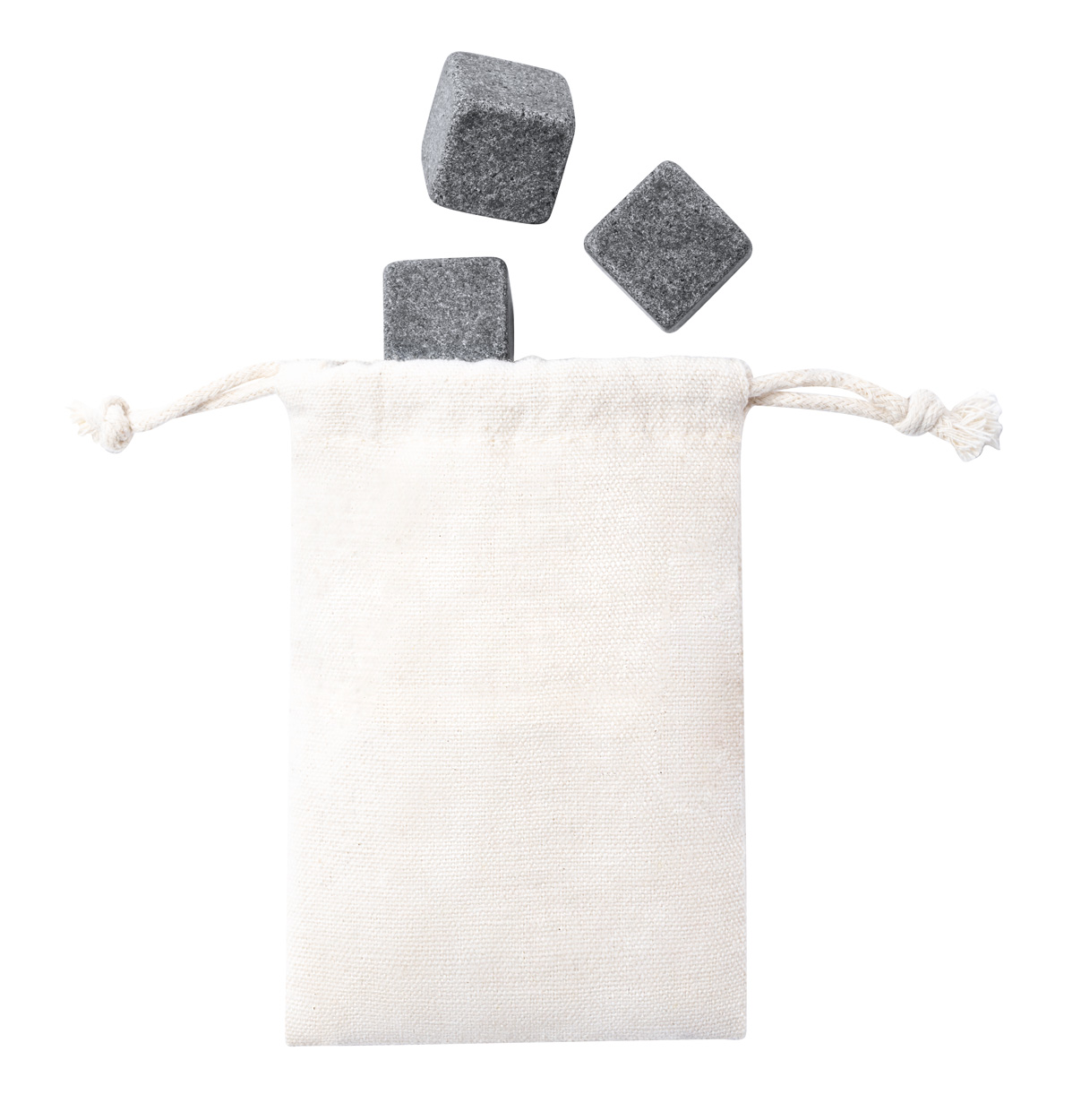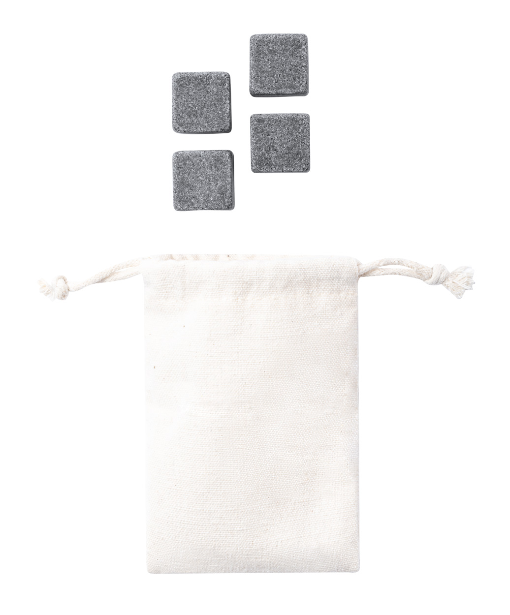 4 Stk. wiederverwendbare Steineiswürfel im Baumwollbeutel.
