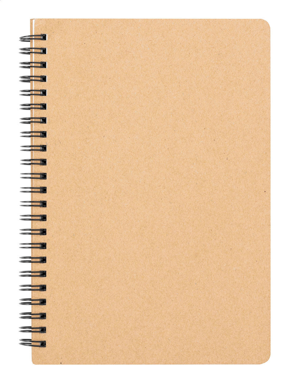 Spiralnotizbuch aus Recyclingpapier mit 70 linierten Blättern, A5-Format.