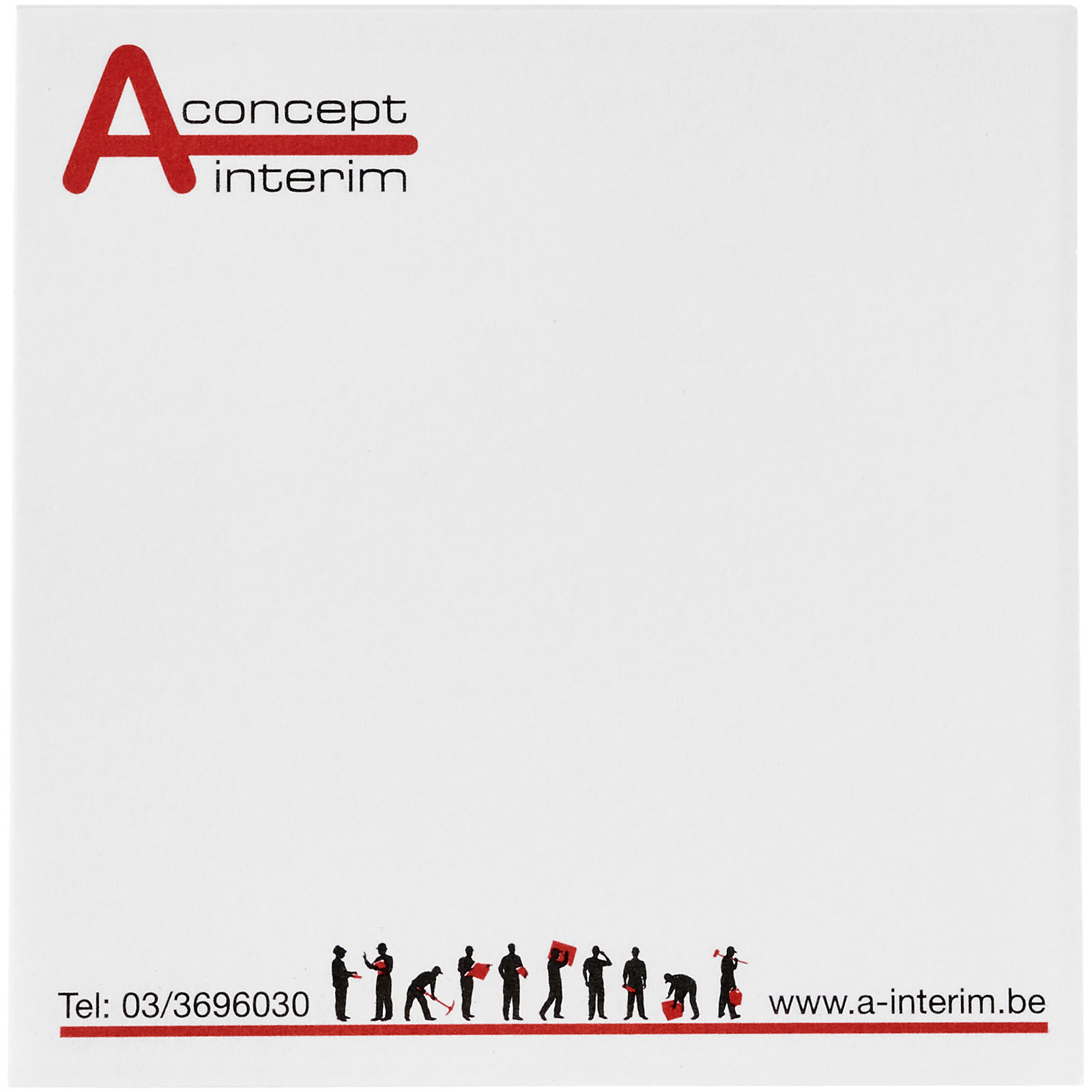 Sticky-Mate® Haftnotizen. Mit 80g / m2-Blankopapier. Standardlieferung mit 50 Blatt, auch erhältlich mit 25 oder 100 Blatt. Eine vollfarbige Dekoration ist auf jedem Blatt möglich. Blattabmessungen: 75 x 75mm.