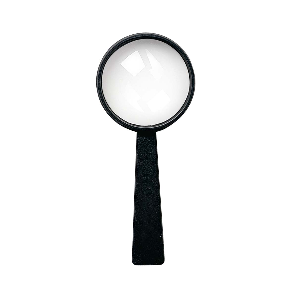 Lupe aus stabilem Kunststoff mit einem Durchmesser von 60 mm, 4-facher Vergrößerung und Stiel zum bequemen Halten. Mit spezieller, asphärischer Linse.