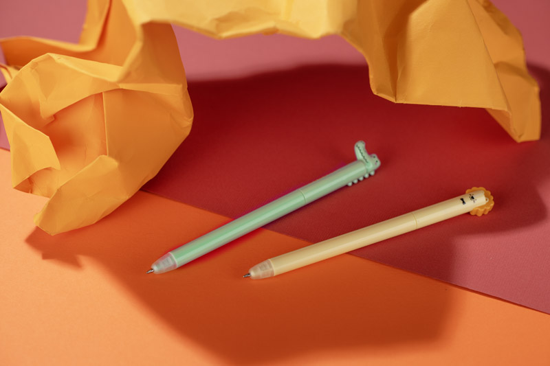Der Kugelschreiber ANIMAL mit Krokodilmotiv zeichnet sich durch seinen leicht humorvollen Stil und seine angenehm zu berührende Lackierung aus. Der grüne Schaft und die krokodilförmige Kappe verleihen ihm einen einzigartigen Charakter. Der Drehmechanismus ermöglicht ein leichtes Auswerfen der Gel-Feder (0,5 mm), die ein gleichmäßiges und flüssiges Schreiben garantiert. Ein praktisches und witziges Gadget, das einen Hauch von Leichtigkeit in den Alltag bringt.