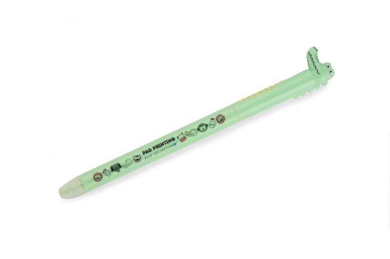 Der Kugelschreiber ANIMAL mit Krokodilmotiv zeichnet sich durch seinen leicht humorvollen Stil und seine angenehm zu berührende Lackierung aus. Der grüne Schaft und die krokodilförmige Kappe verleihen ihm einen einzigartigen Charakter. Der Drehmechanismus ermöglicht ein leichtes Auswerfen der Gel-Feder (0,5 mm), die ein gleichmäßiges und flüssiges Schreiben garantiert. Ein praktisches und witziges Gadget, das einen Hauch von Leichtigkeit in den Alltag bringt.