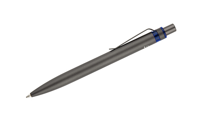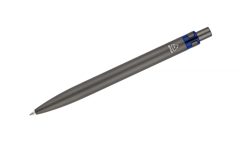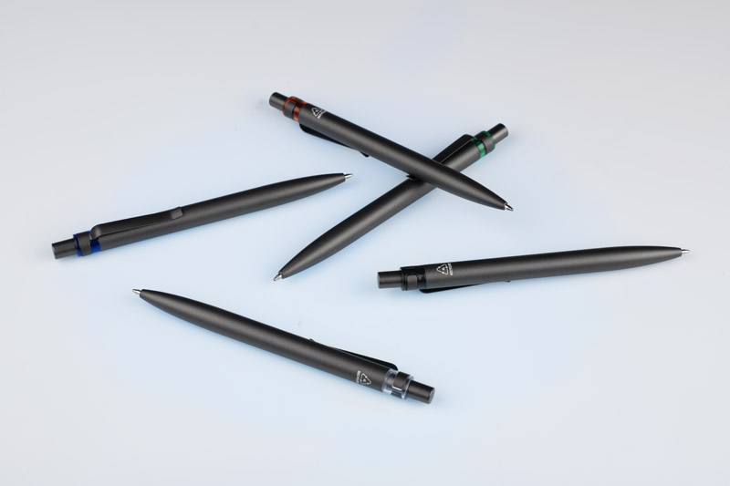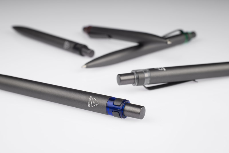 Der RAL-Kugelschreiber ist aus recyceltem Aluminium in einer eleganten Graphitfarbe mit Chromfinish gefertigt. Der mit einem farbigen Akzent versehene Aluminiumclip verleiht ihm ein modernes und wiedererkennbares Aussehen. Der automatische Auswurfmechanismus sorgt für eine bequeme und schnelle Handhabung in jeder Situation. Die schlanke Form und der angenehm zu berührende Schaft garantieren Schreibkomfort. Die G2-Feder mit einer Strichstärke von 1,0 mm sorgt für ein flüssiges und präzises Schreiben. Er ist ein praktisches Werbegeschenk, das sich perfekt für das Büro und Geschäftstreffen eignet.
