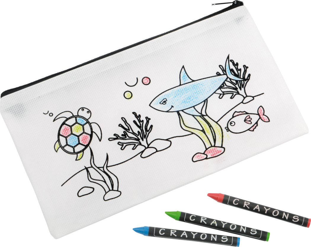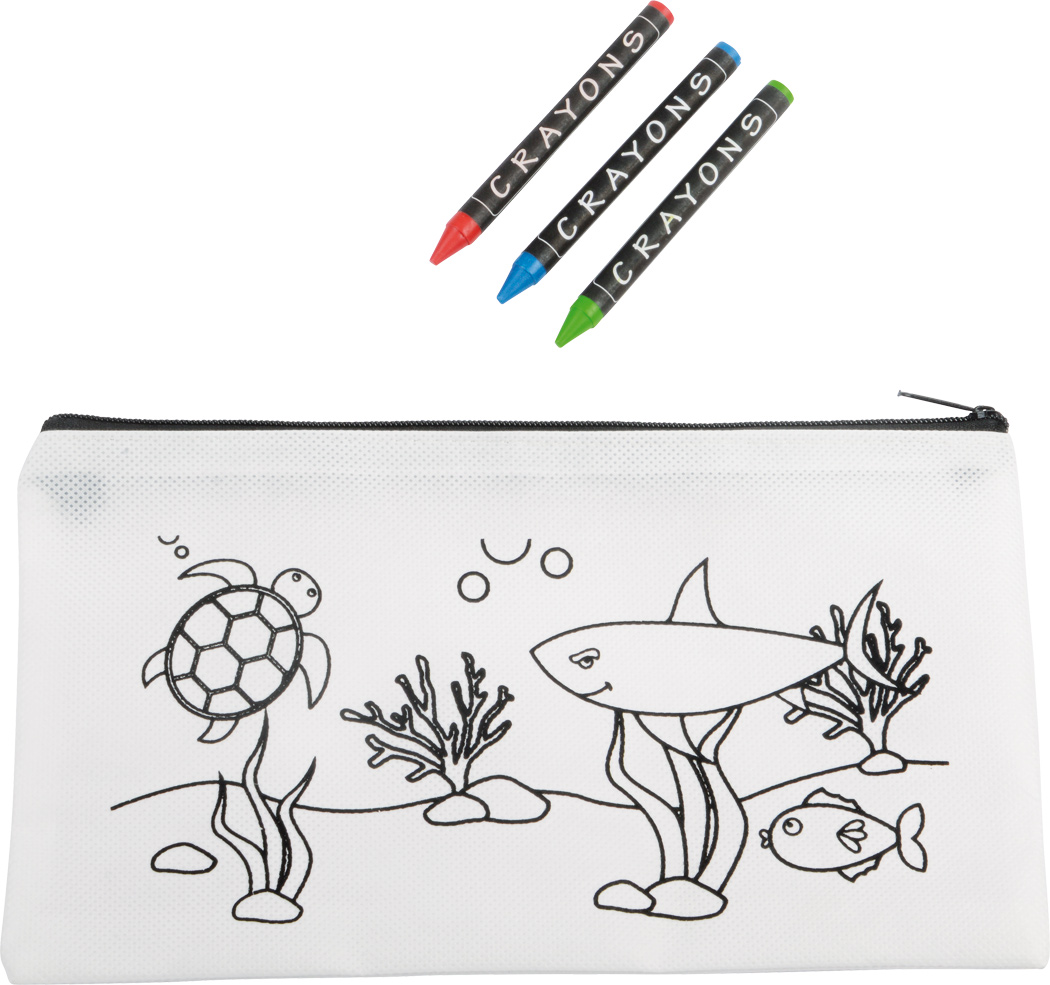 Stiftetasche COLOURFUL SCHOOL: mit Reißverschluss, aufgedrucktes Motiv, 3 Wachsmalstifte zum Ausmalen