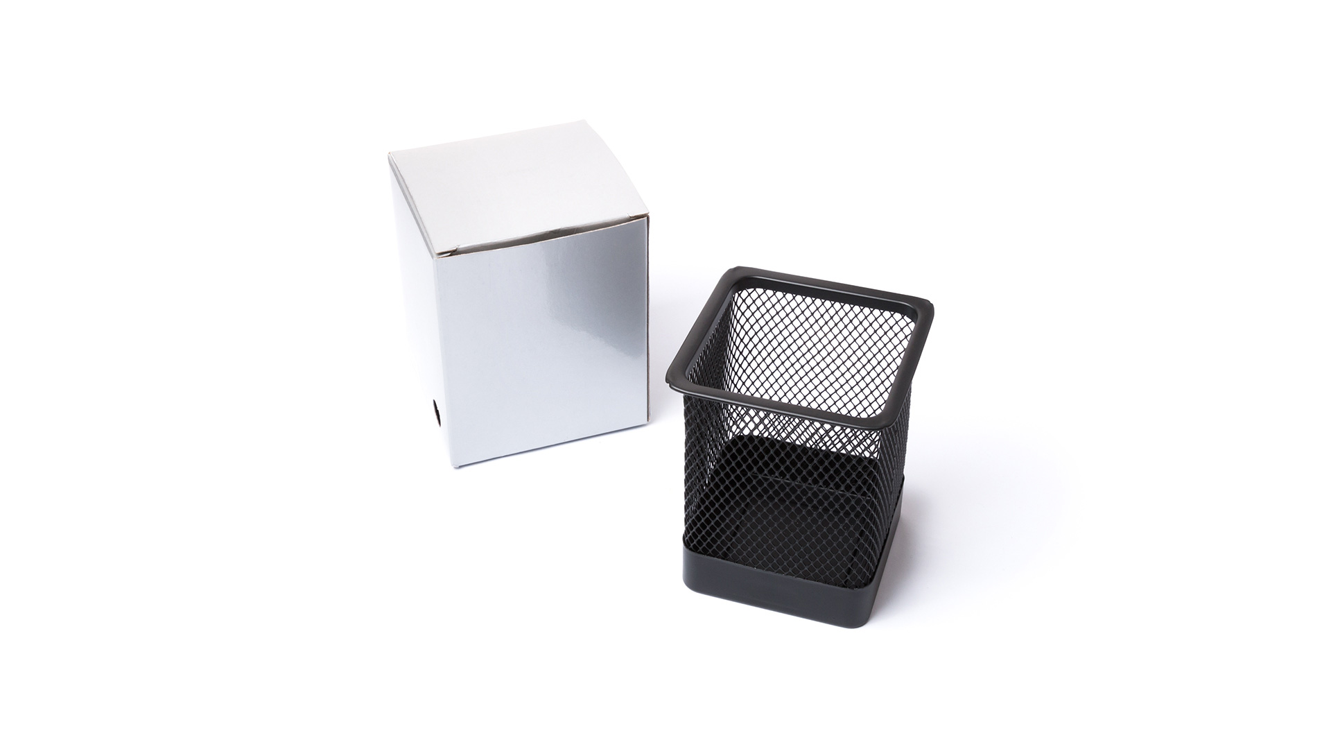Stifthalter aus glänzendem Metall-Mesh in lebendigen Farben. Präsentiert in einer individuellen Box.