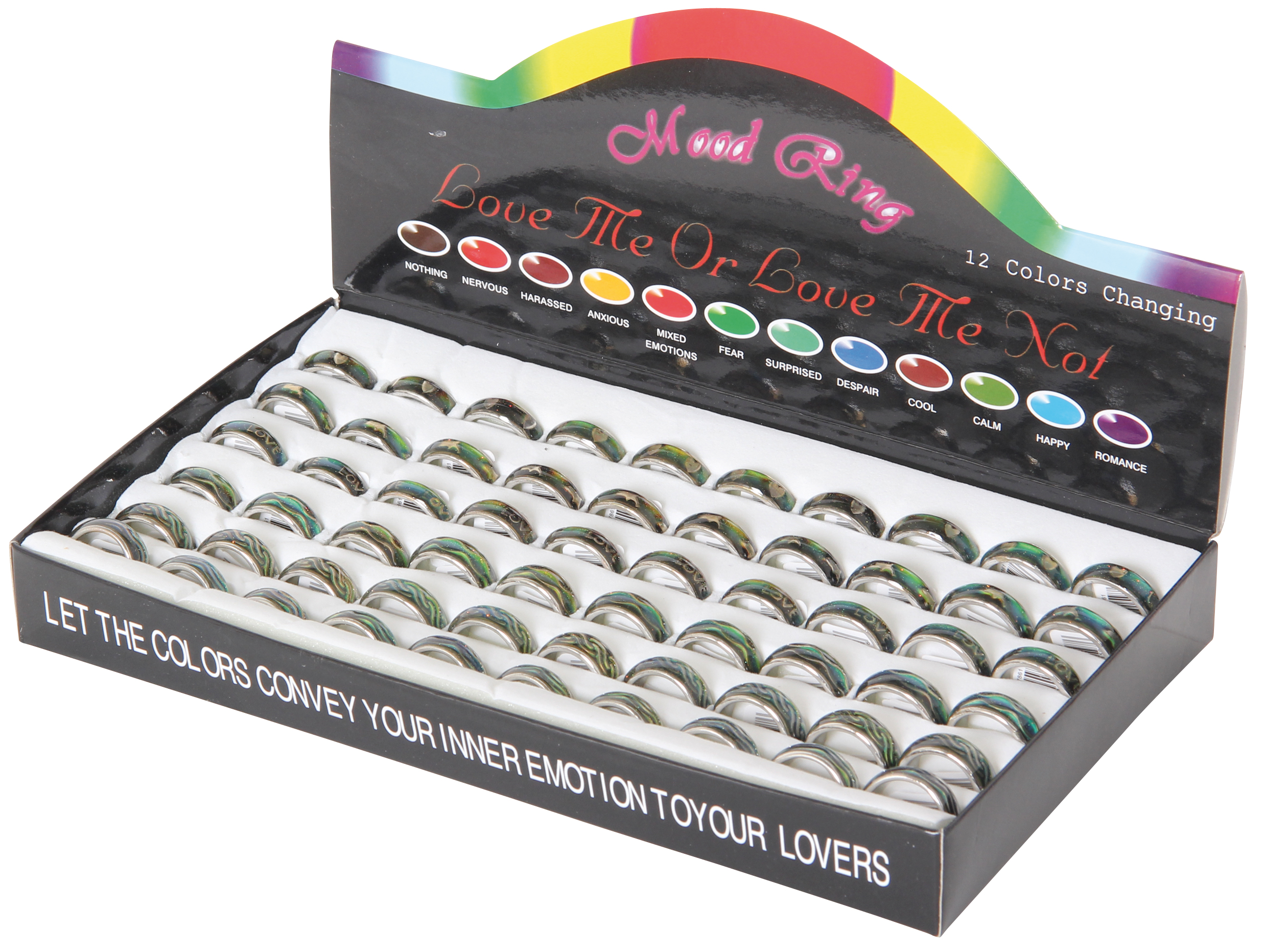 Verschiedene Motive sortiert: Wellenmuster, Delphine, Love ... Preiswerter Trend-Artikel! Je nachdem, in welche Farben sich der Ring an Ihrem Finger verfärbt, sind Sie gestresst, ängstlich, nervös, unentschlossen, normal, entspannt, ruhig, cool, liebevoll, romantisch, leidenschaftlich oder sehr glücklich.