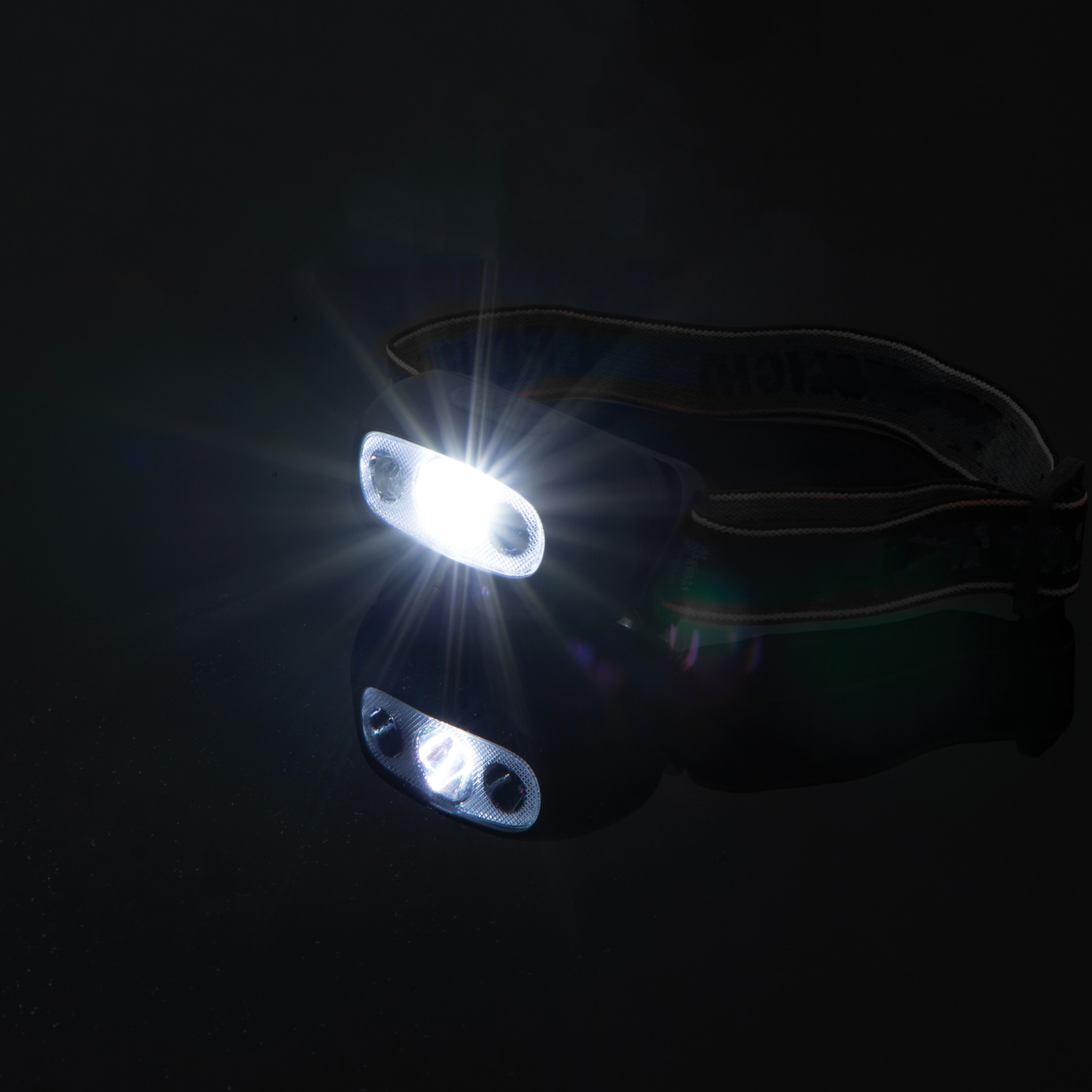 Wiederaufladbare COB-Stirnlampe mit verstellbaren Kopfband, drei Licht-Modi (extra helles Licht, normales Licht und Blinkfunktion) sowie einem Sensor. Ist die Lampe auf Sensor-Licht gestellt, kann das Licht einfach mit einer Handbewegung vor der Lampe an- und ausgeschaltet werden (verfügbar für alle drei Licht-Modi). Weiterhin verfügt die Lampe über einen Akku mit 400 mAh und ein 30 cm USB-C Ladekabel. Ihre Werbung drucken wir auf die Lampe unterhalb des Knopfes.