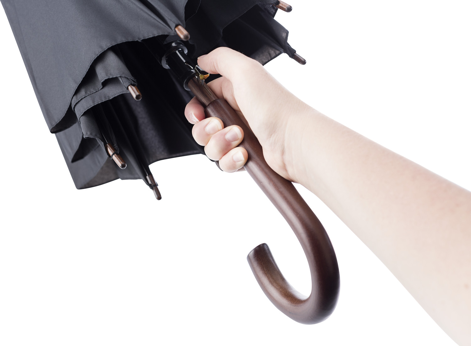 Regenschirm mit einer Bespannung aus rPET (170T), einen Handgriff aus Kunststoff und einen Rahmen aus Fiberglas.