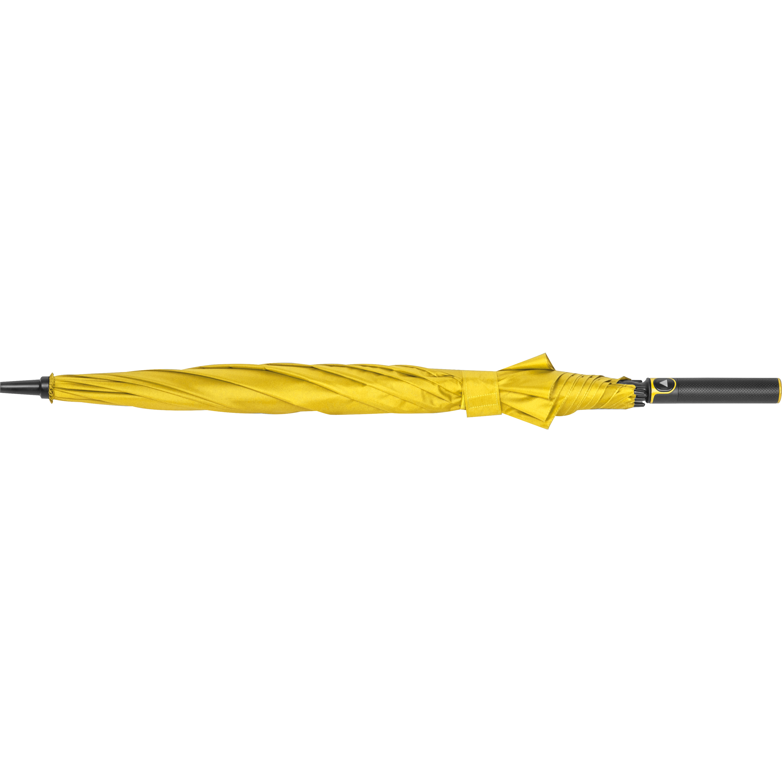 Klassischer Stockschirm mit integriertem Ring im Griff, automatischer Öffnung, Fiberglasgestänge- und speichen. Der Bezug besteht aus 190T Pongee Material. Ihre Werbung drucken wir auf ein Segment.