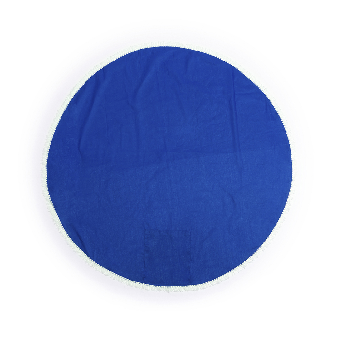 Strandtuch mit Fransen aus Baumwolle (125 g / m2). Mit originellem kreisförmigem Design in lebendigen Farben.