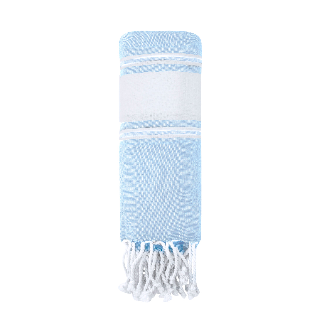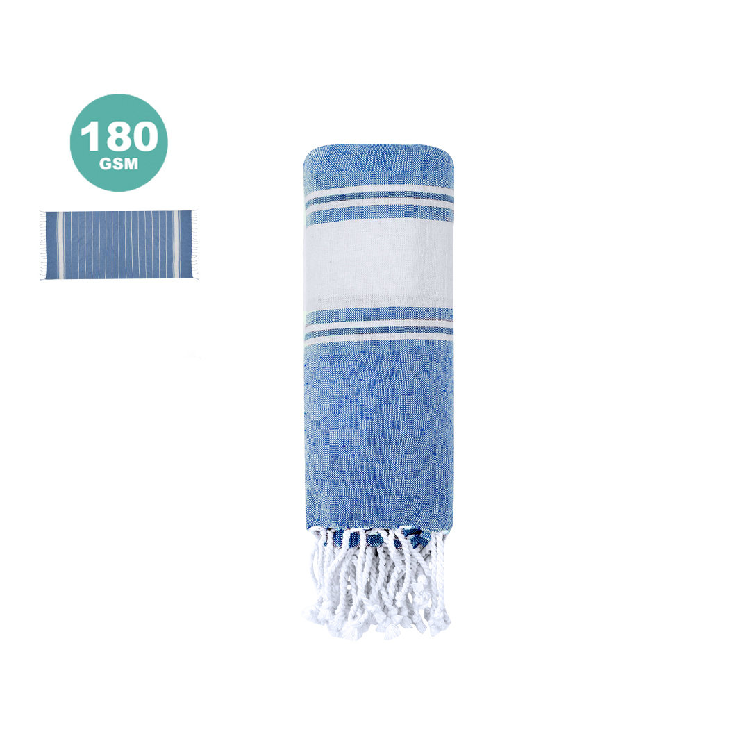 180g / m2 weicher Handtuch-Pareo in Kombination mit Baumwolle und Polyester. Erhältlich in verschiedenen Farben in Bicolor-Ton. Einzeln im Beutel präsentiert.