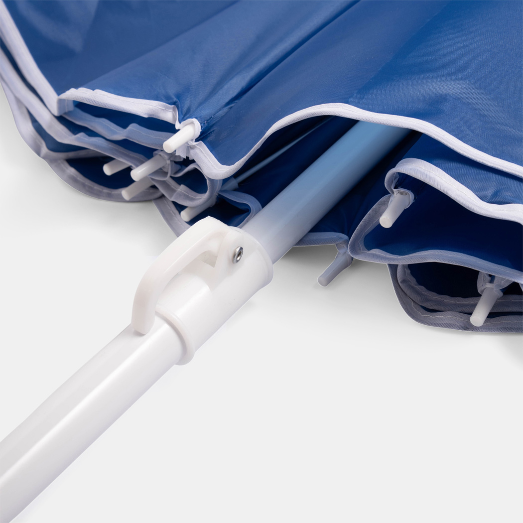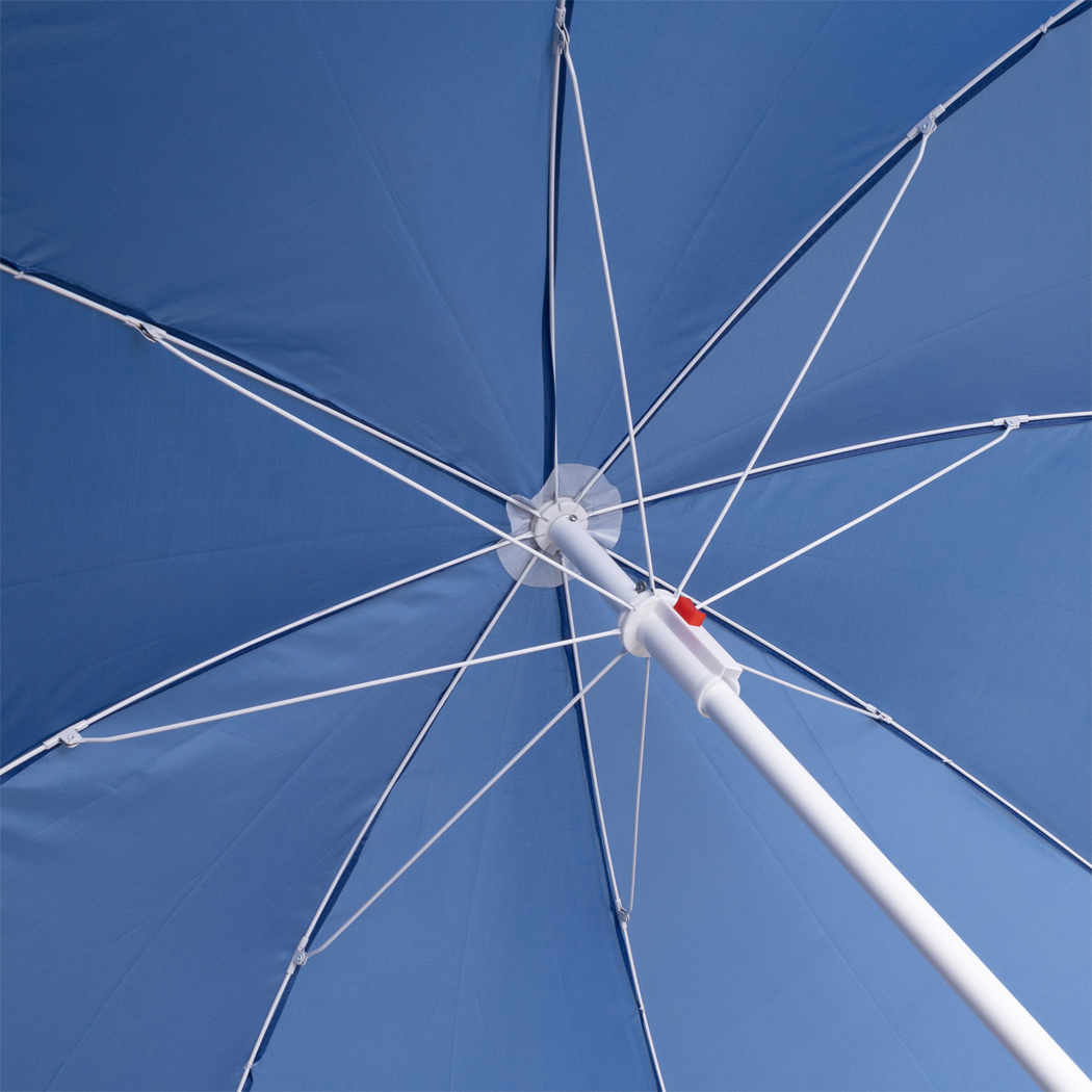 Strand- und Sonnenschirm SUNFLOWER: 2-teiliger Metallstock, Metallspeichen, Kunststofftips, Polyester-Bespannung, in Kunststoff-Tragehülle mit Schultergurt