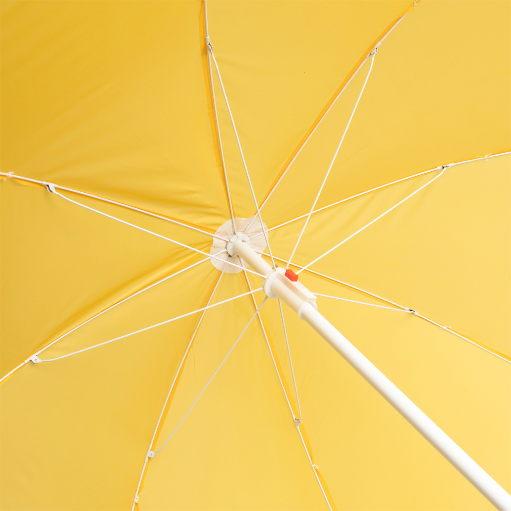 Strand- und Sonnenschirm SUNFLOWER: 2-teiliger Metallstock, Metallspeichen, Kunststofftips, Polyester-Bespannung, in Kunststoff-Tragehülle mit Schultergurt