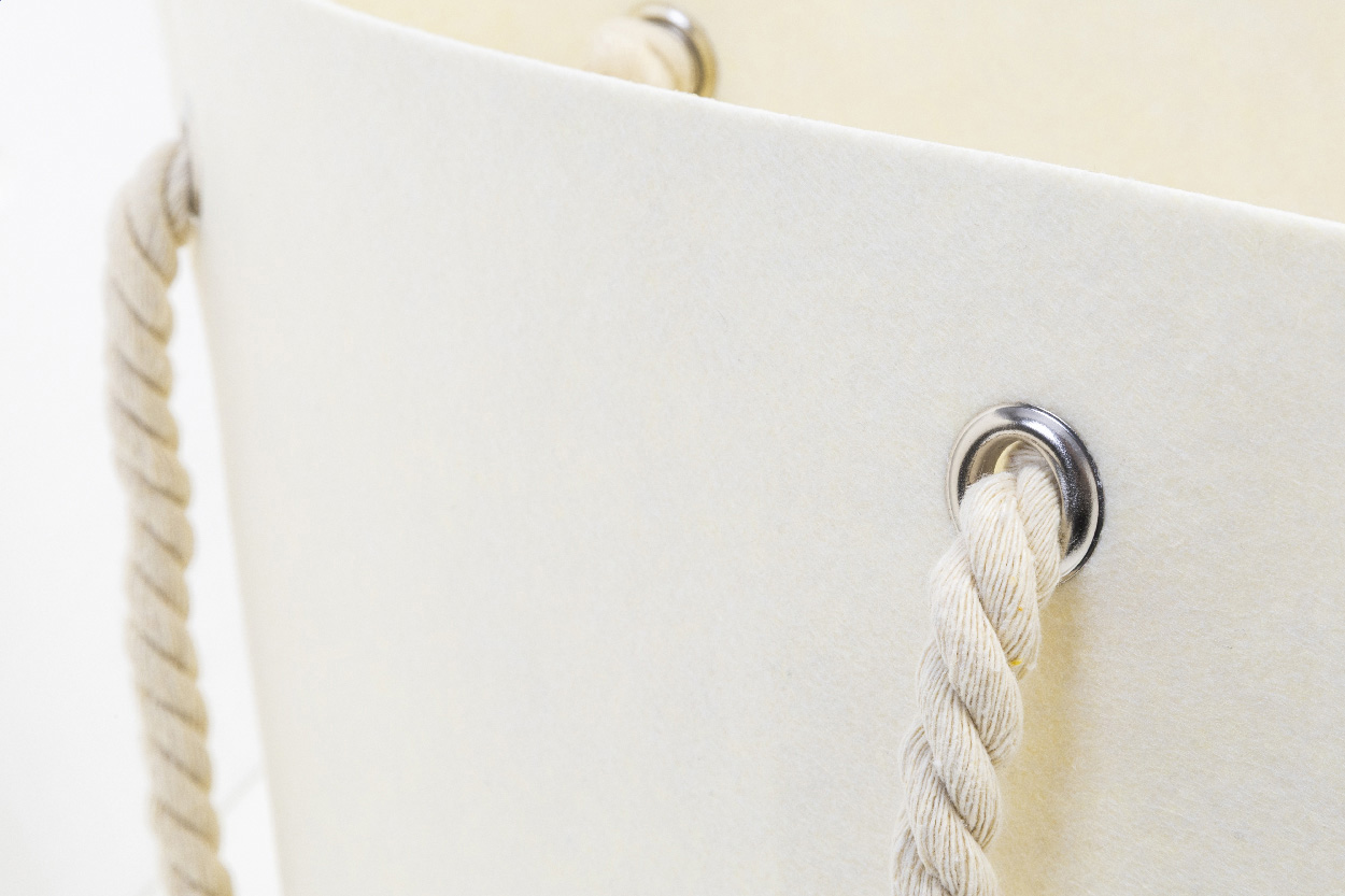 Strand- oder Einkaufstasche aus RPET-Filz mit Baumwollkordelgriffen und Bodenfalte. Mit RPET-Label.